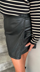 Lissandra Black Leather Look Wrap Detail Mini Skirt
