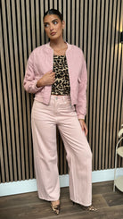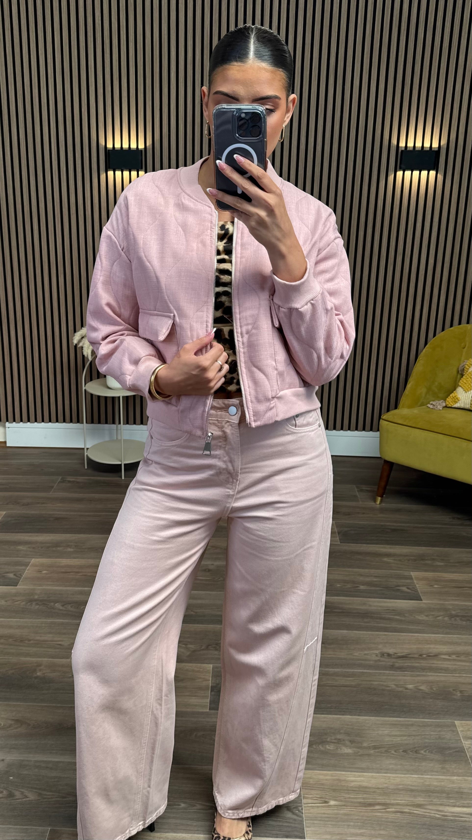 Elevate your denim collection with these sophisticated Liz Rose Pink Wide Leg Jeans. The flattering wide-leg silhouette offers both comfort and style, while the distinctive rose pink hue adds a refined touch to casual and dressed-up ensembles alike.