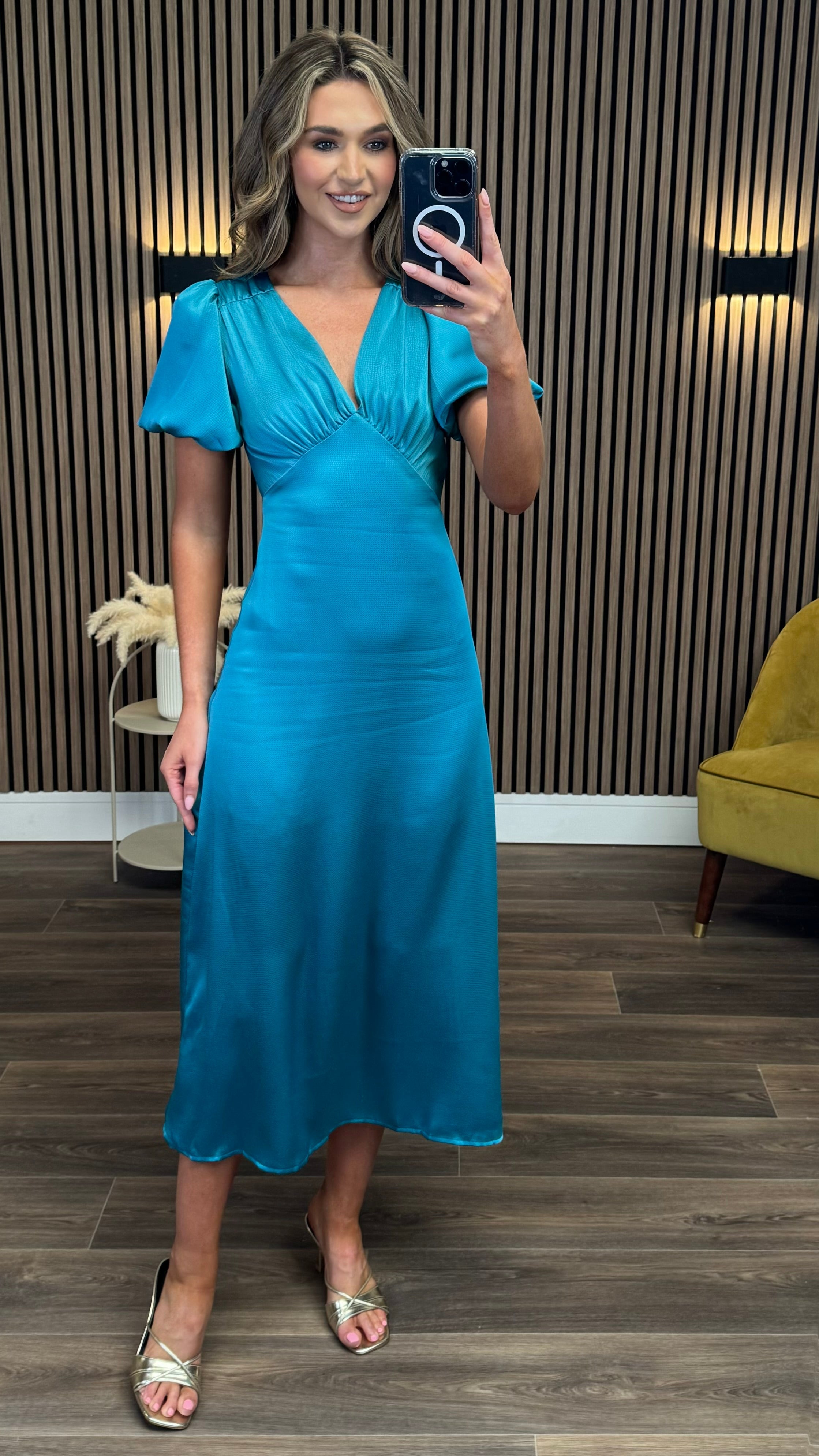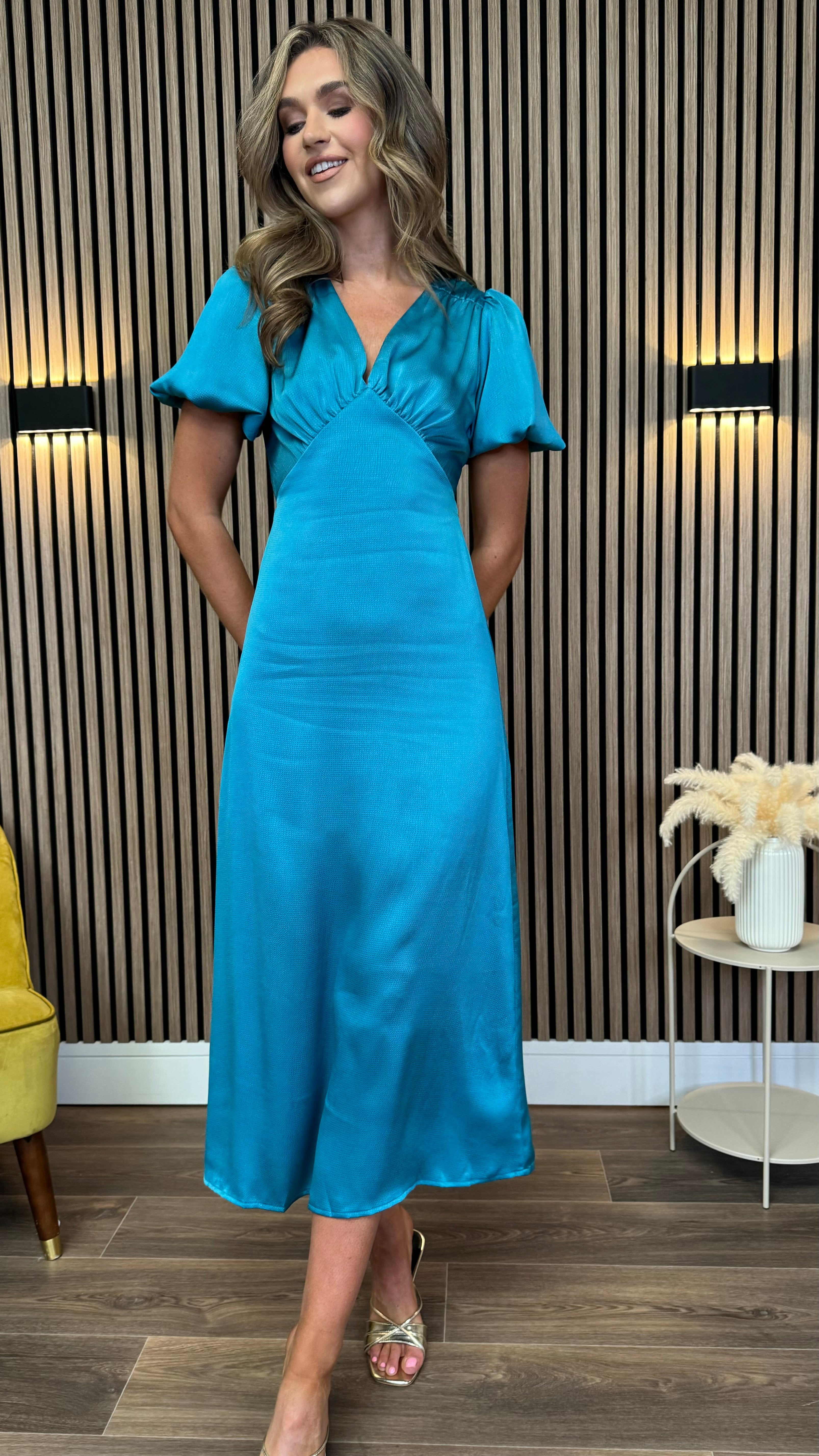 ✨ Make a splash in our Lolita Teal Maxi Dress! 💃 This gorgeous satin number features a flirty V-neck and adorable puff sleeves that'll have you feeling like royalty. 👑 The rich teal colour is perfect for any season, while the flowing maxi length creates drama with every step! 💖 Dress it up for parties or down for brunches – either way, you'll be turning heads! 🤩