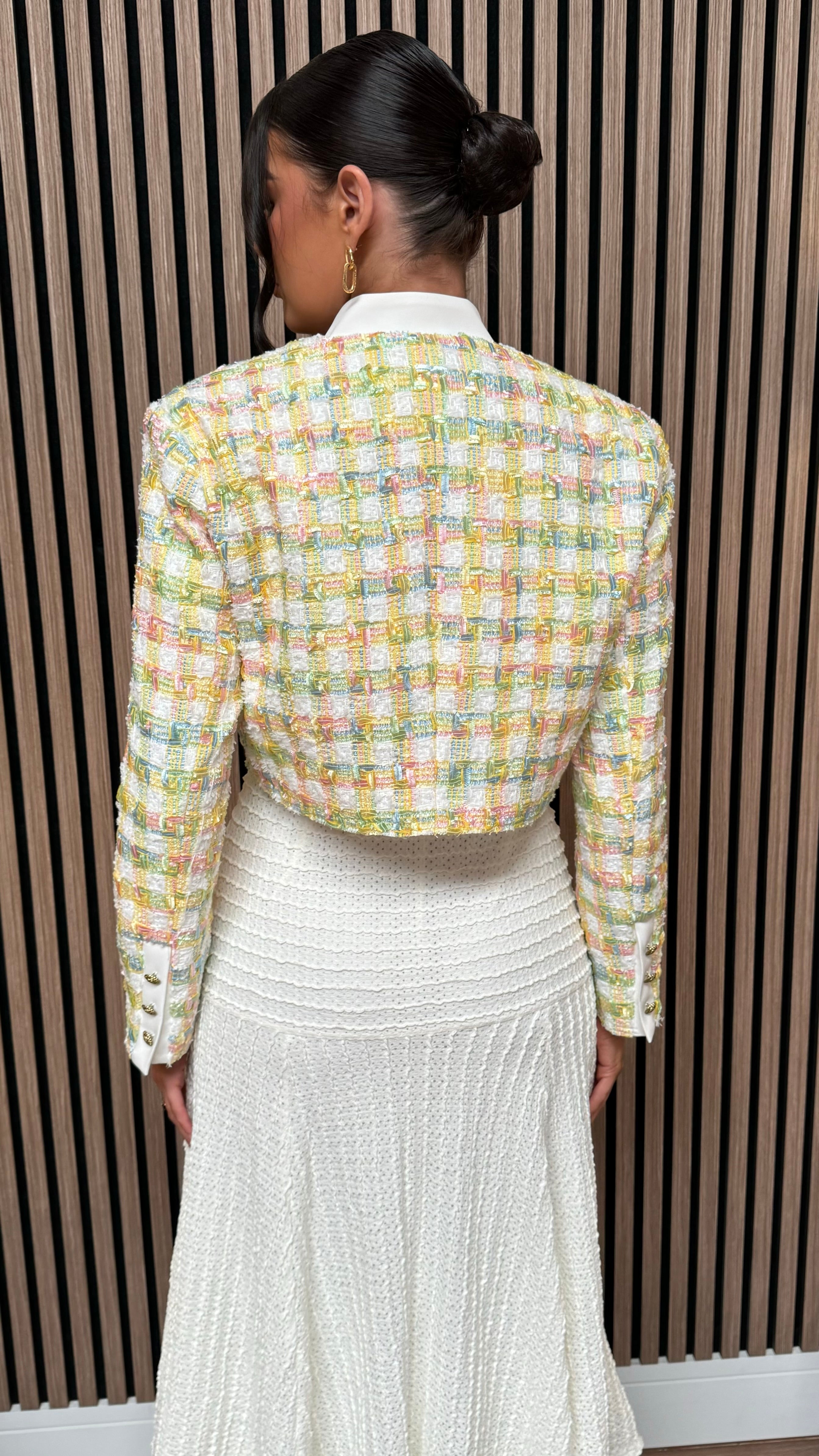 Add some fun and flair to your wardrobe with the Lucia Yellow Printed Button Down Crop Jacket! This quirky and stylish jacket features a playful button down design, perfect for bringing a touch of personality to any outfit. Stay trendy and fashionable with this must-have piece. 🌼🌻