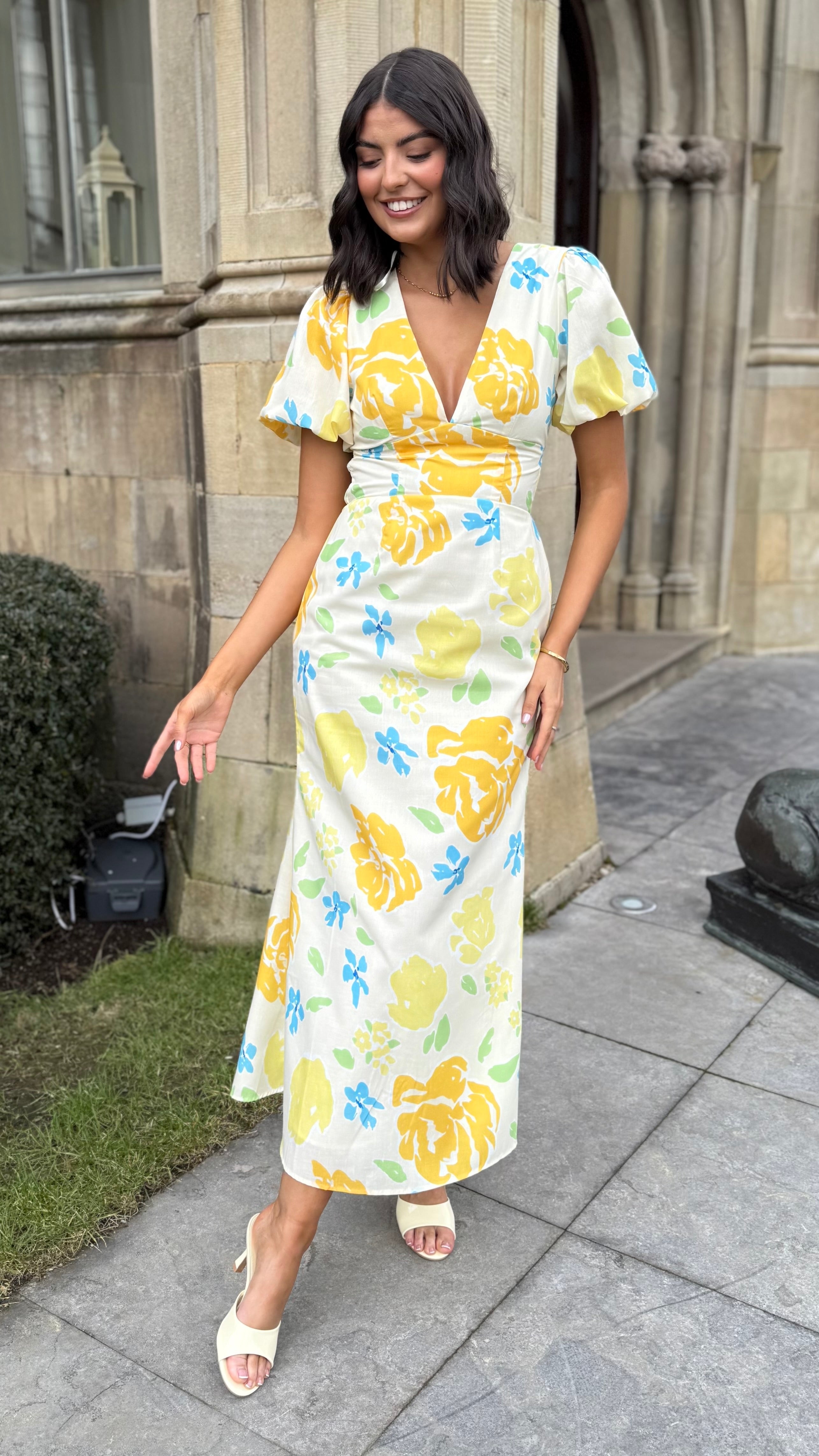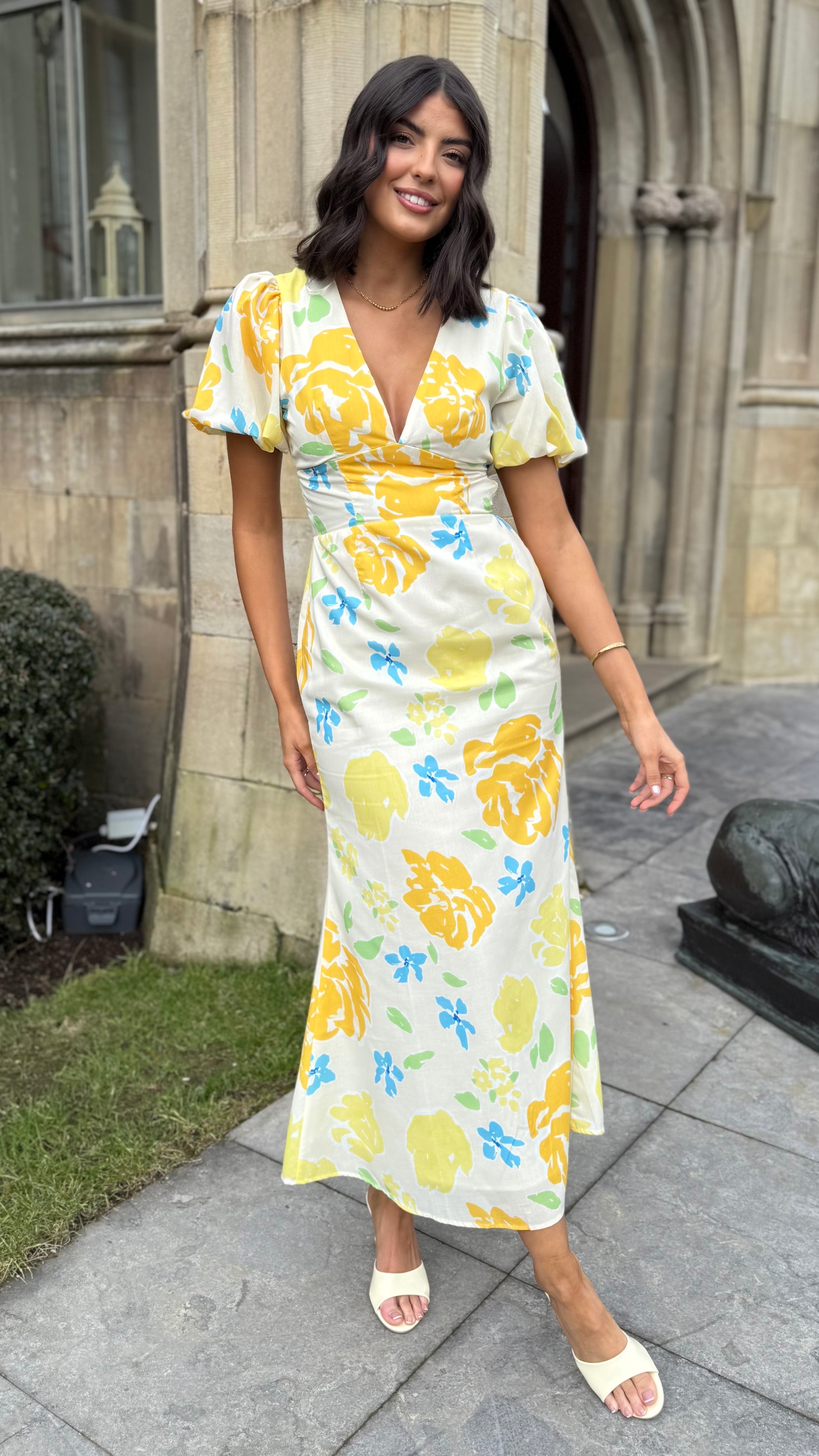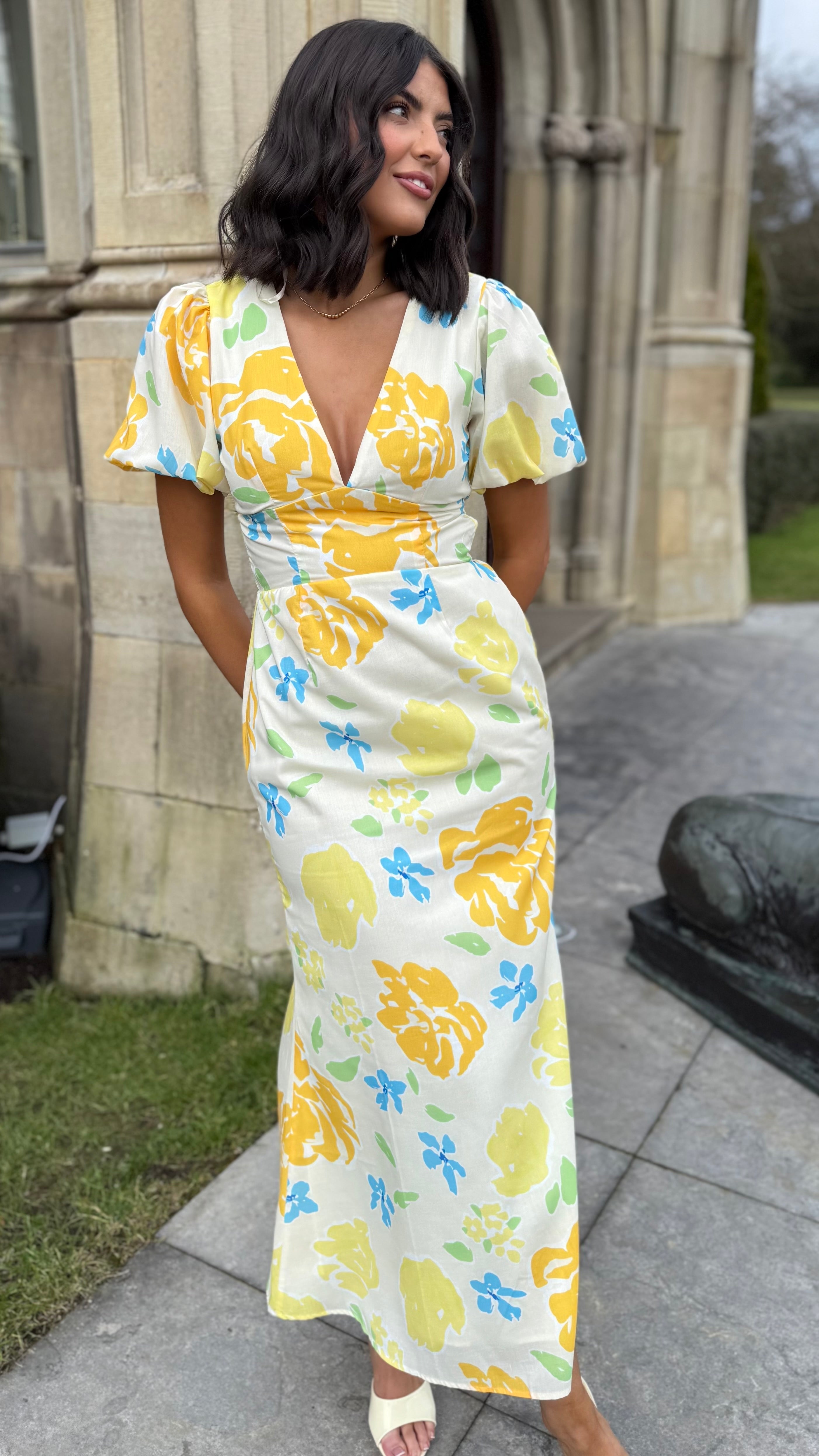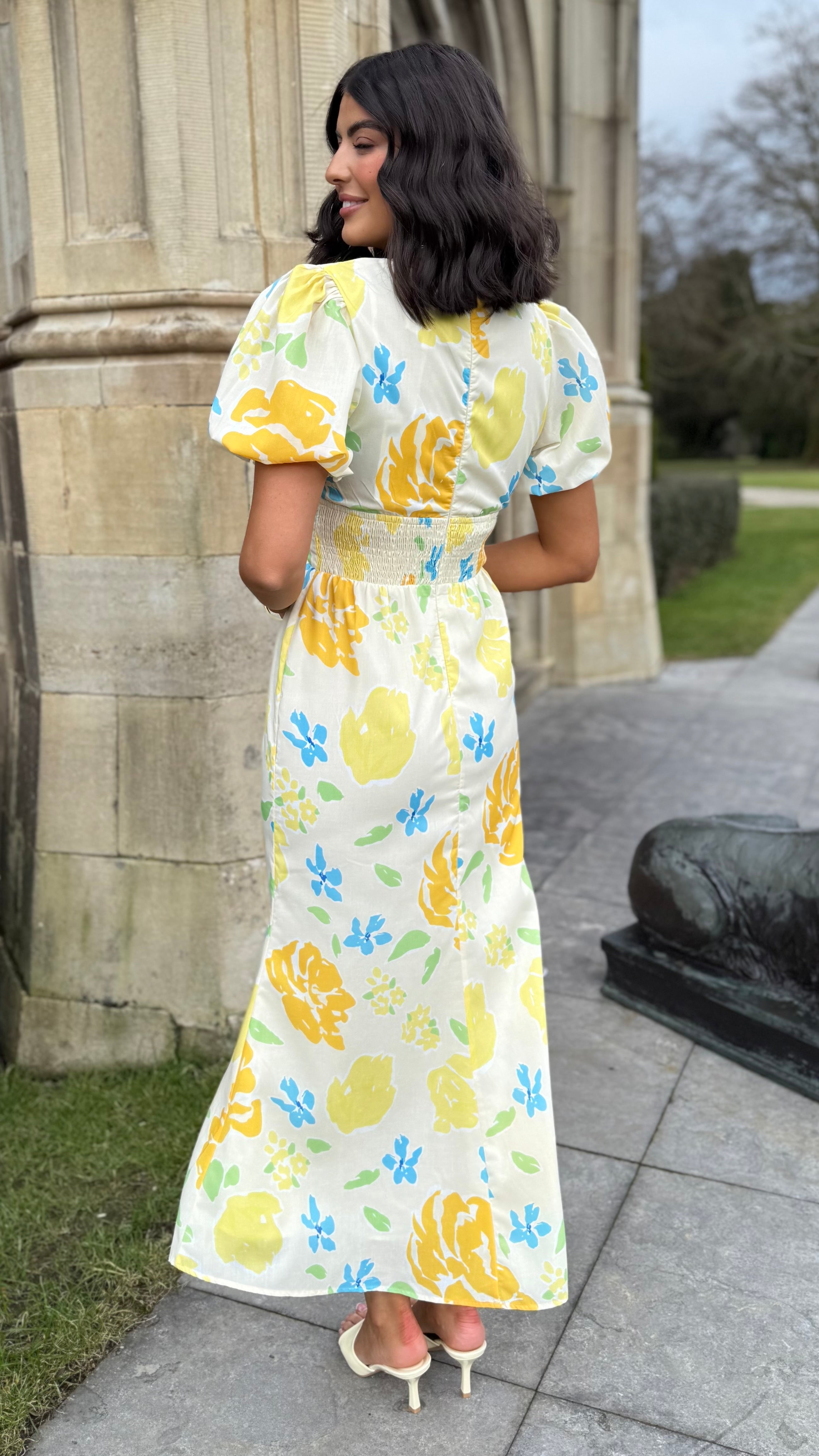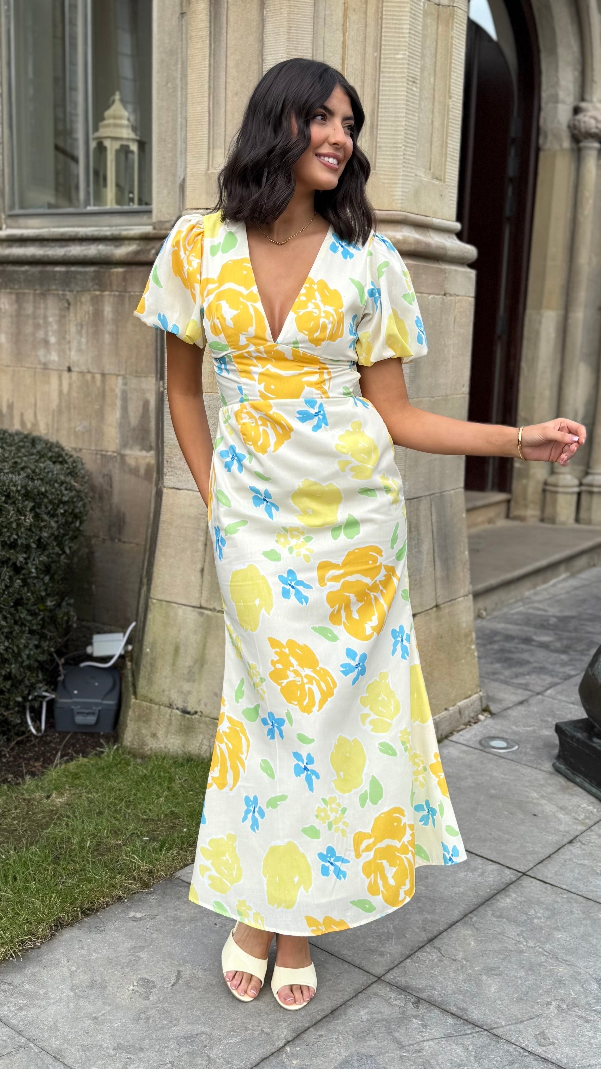 Lucinda Yellow Floral Short Sleeve Maxi Dress