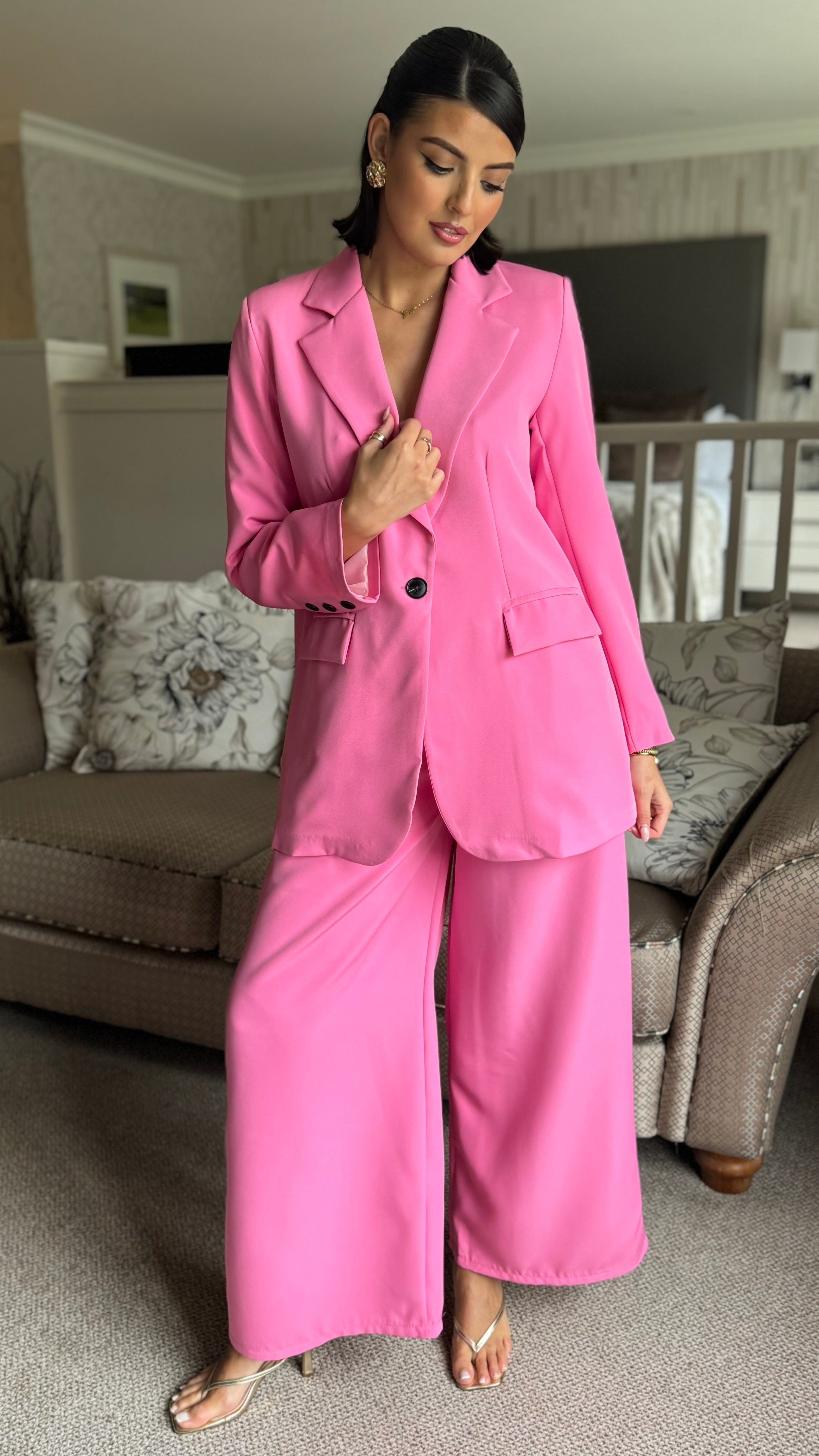 Lux Pink Oversized Wide Leg Suit