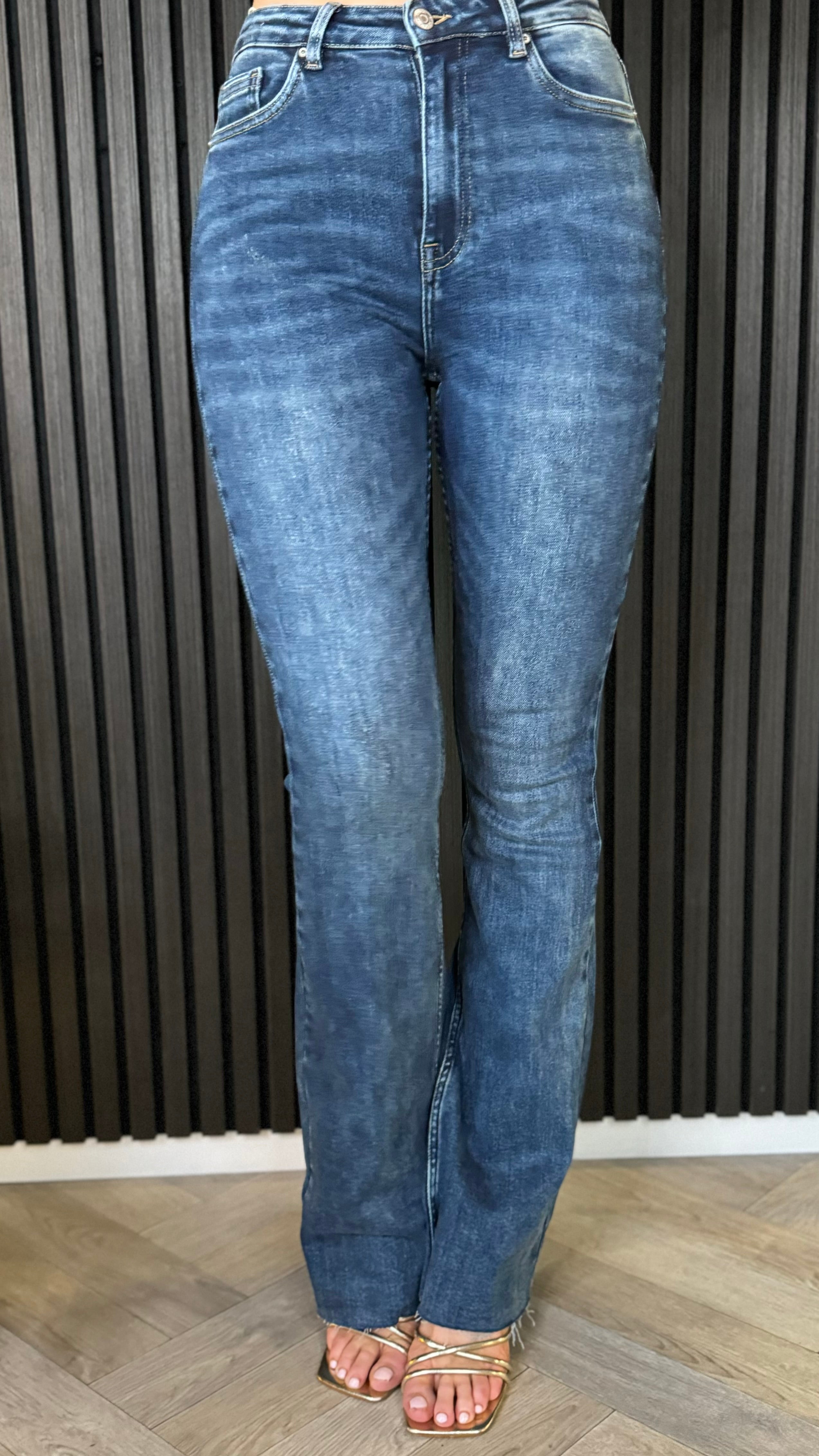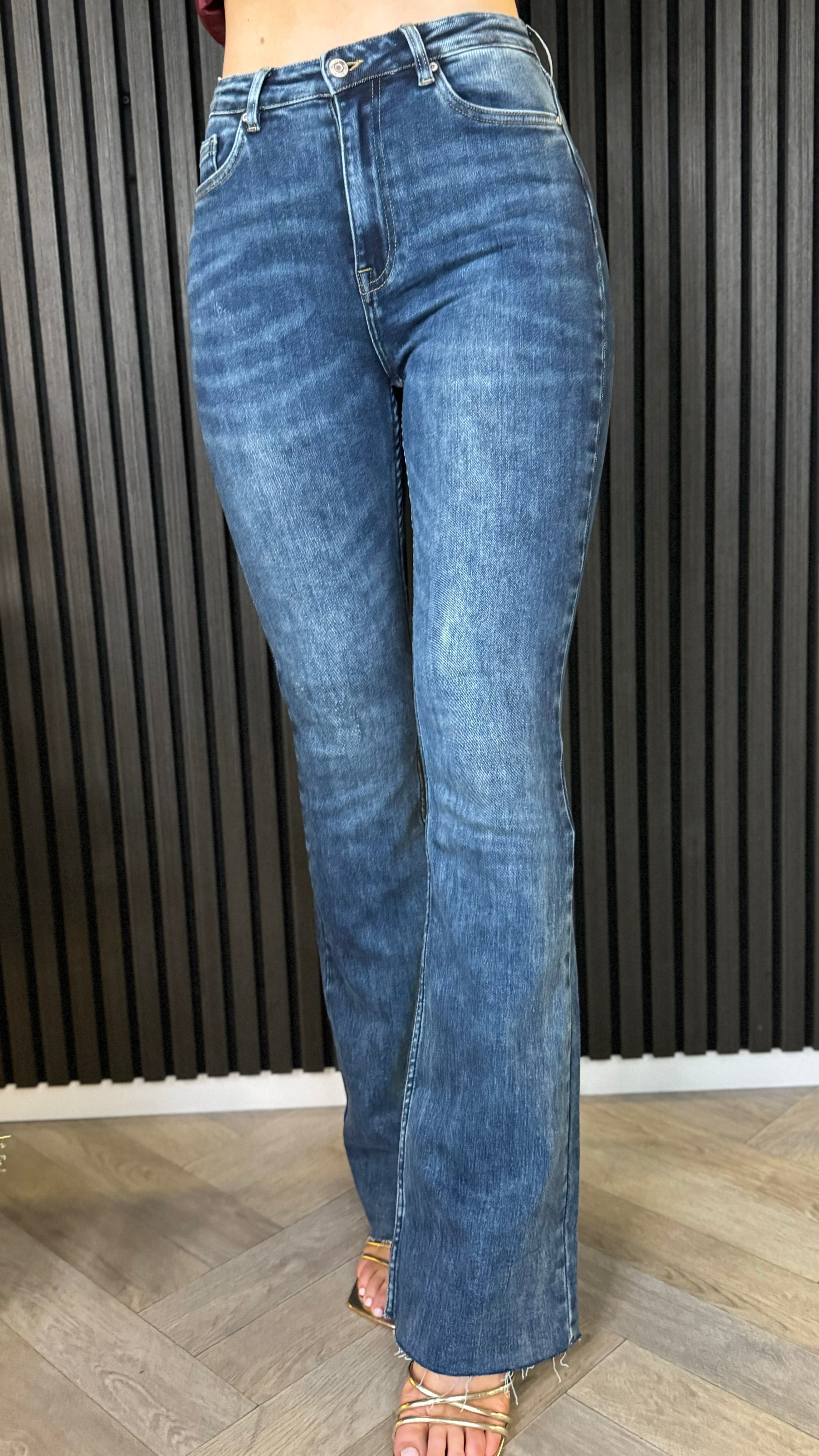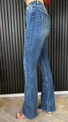 Get ready to flare things up with our Marianne Dark Blue Raw Hem Flared Jeans! These jeans not only offer a flattering flare silhouette, but also feature a unique raw hem detail for added style. Perfect for adding a playful touch to your wardrobe. 👖✨