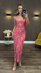 Embrace effortless elegance with the Marion Coral Floral Printed Strappy Backless Midi Dress. Its vibrant coral floral pattern and delicate strappy back create a captivating look that flatters every figure. The backless design adds a hint of allure, while the midi length ensures graceful movement. Perfect for garden parties, brunches, or summer evenings, this dress will make you feel confident and radiant wherever you go.