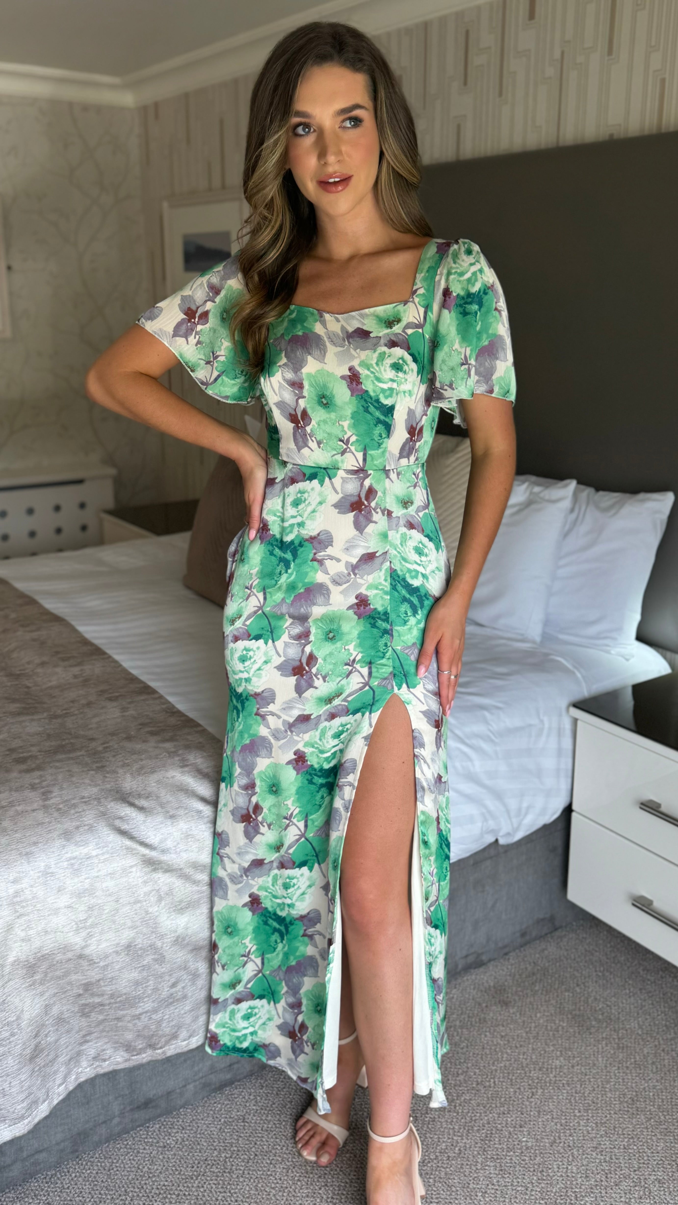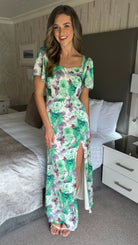 Marley Green & Purple Printed Sweetheart Neck Maxi Dress