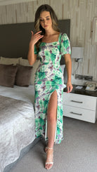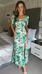 Get ready to be the center of attention in our Marley Green & Purple Printed Sweetheart Neck Maxi Dress! With a stunning sweetheart neckline and flowy silhouette, this dress is perfect for any special occasion. The floral design adds subtle detail, making you feel confident and beautiful all day long! 🌺💜