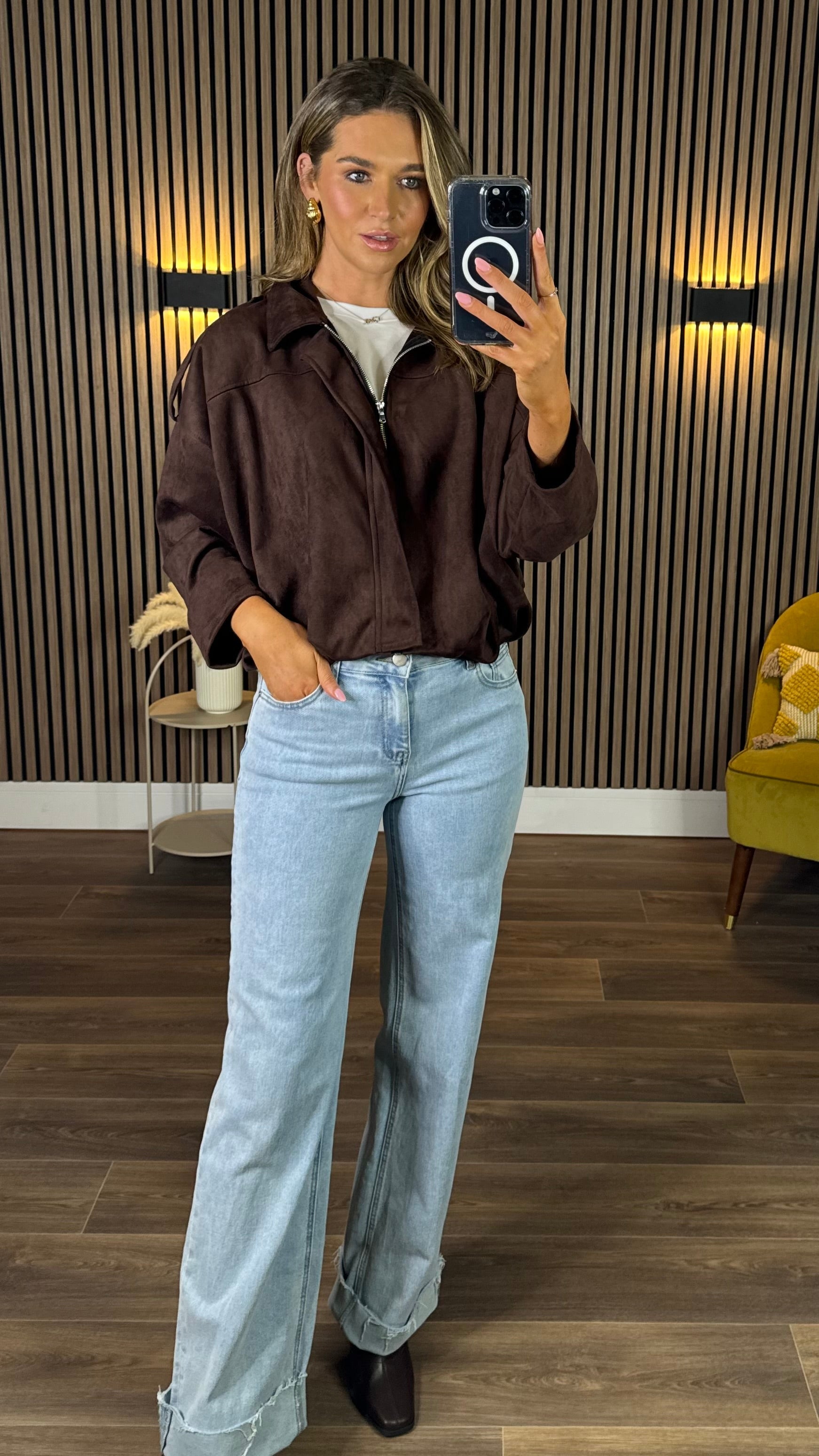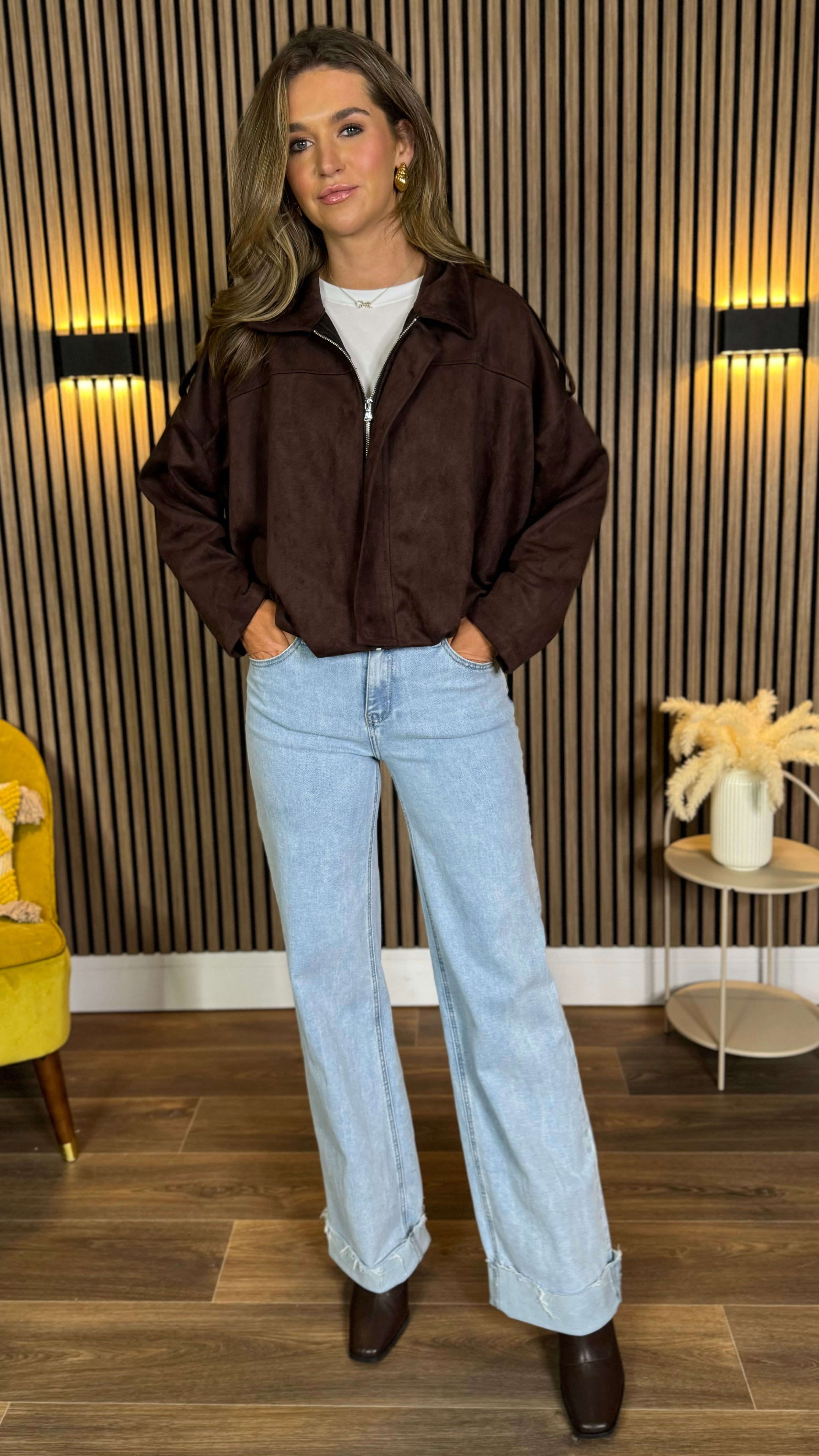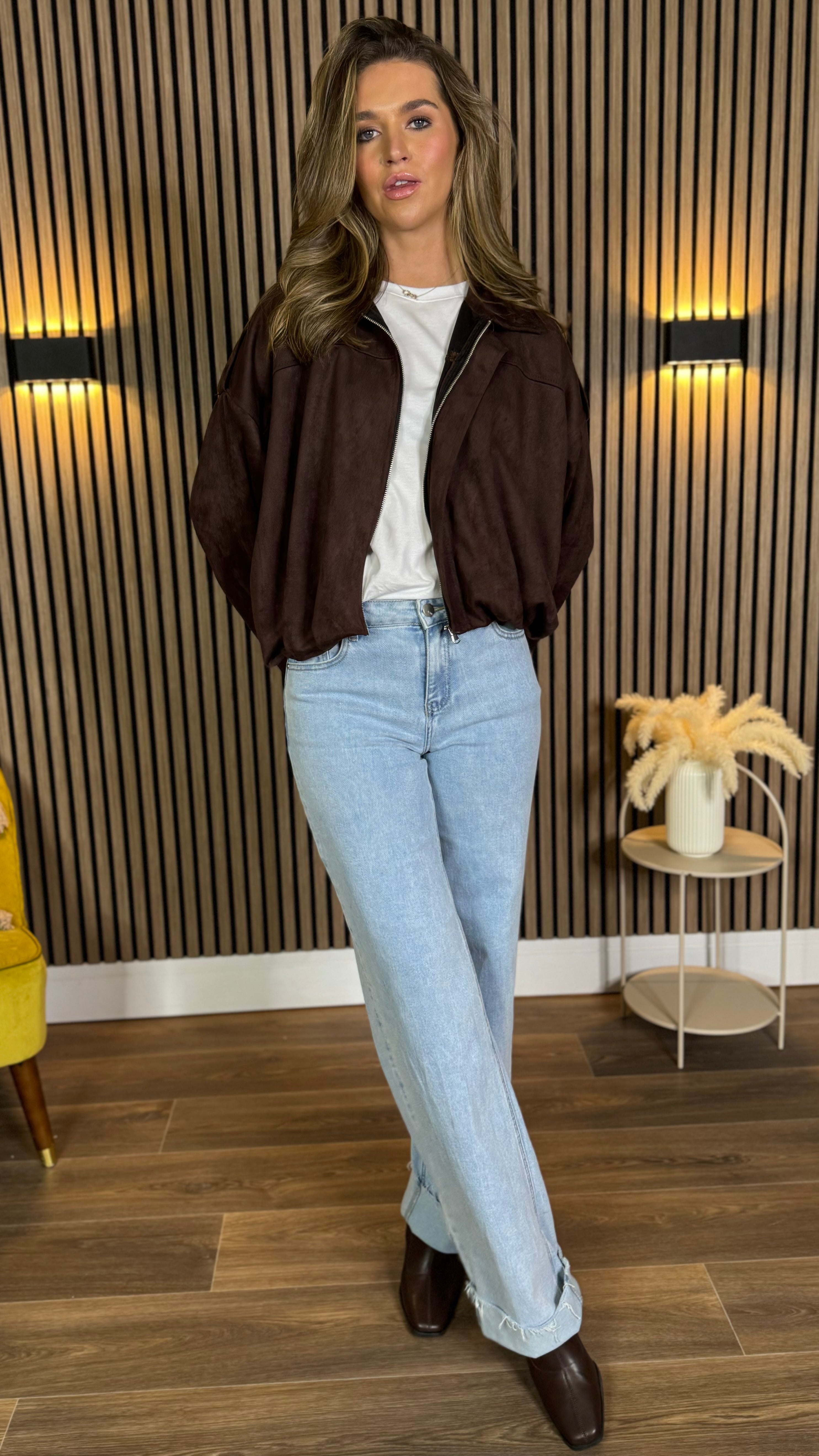 Marnie Chocolate Brown Suedette Bomber Jacket
