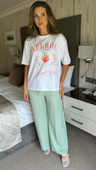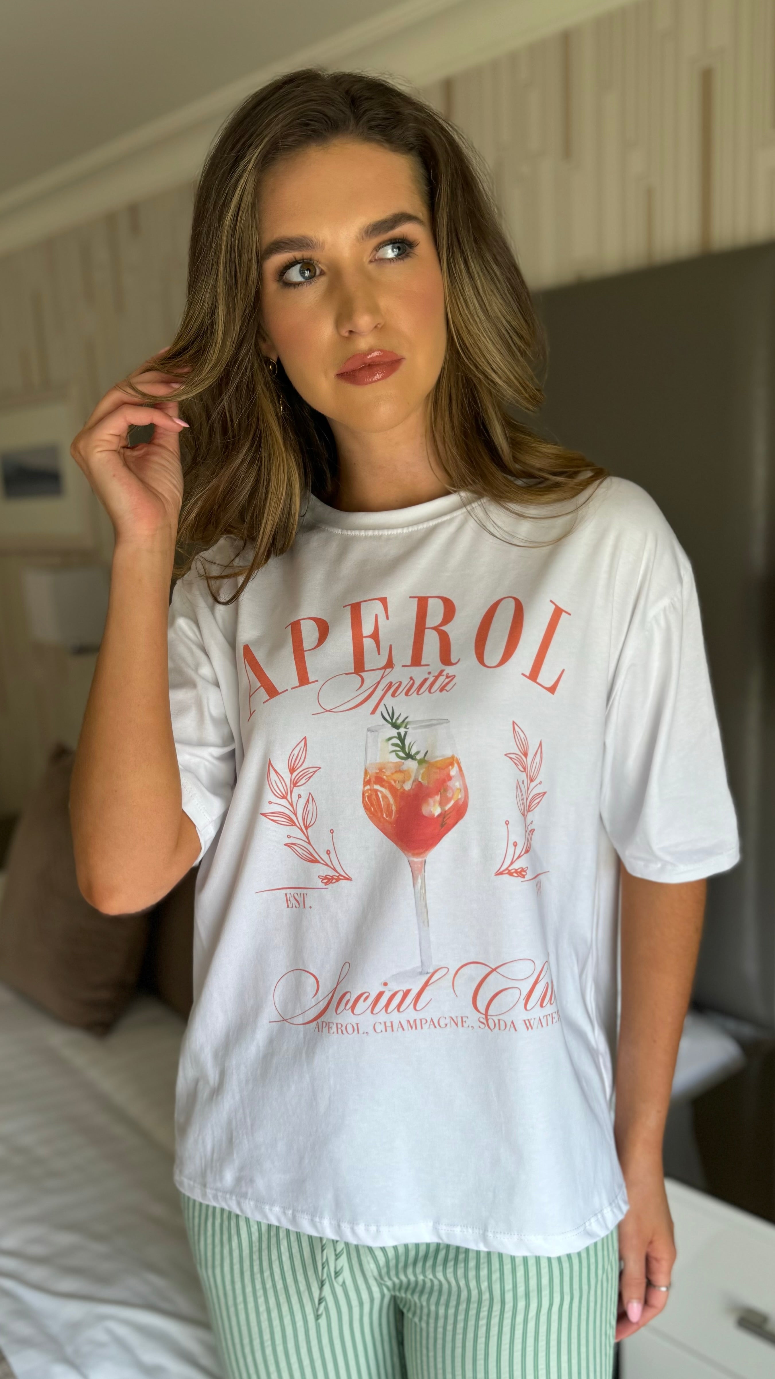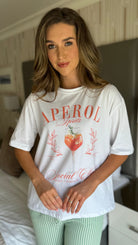 Make a statement with the Marta White Graphic 'APEROL' Printed T Shirt! This playful tee features a quirky graphic and is perfect for those who don't take themselves too seriously. Made from high-quality materials, it's comfortable and stylish. Perfect for casual outings or adding a touch of fun to any outfit! 😎👕