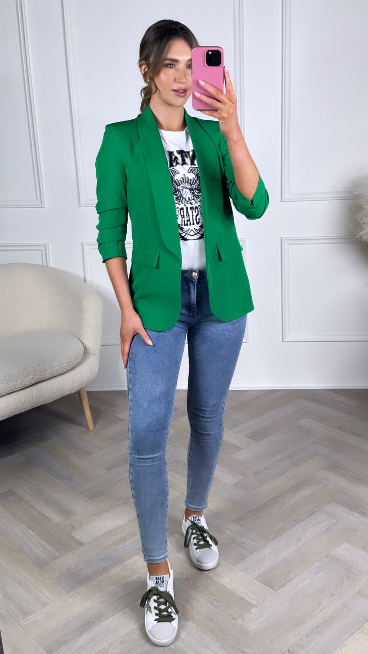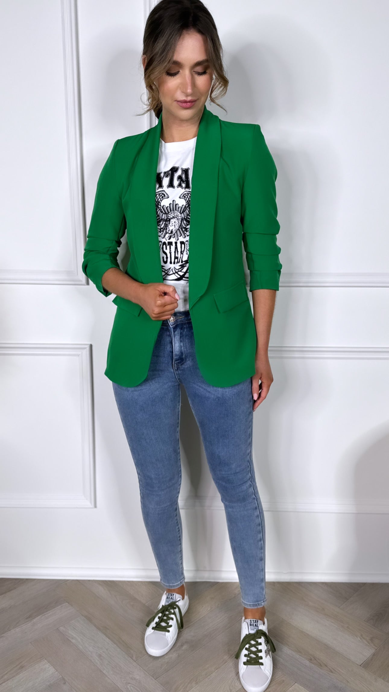 McKinley Bright Green Ruched Sleeve Blazer