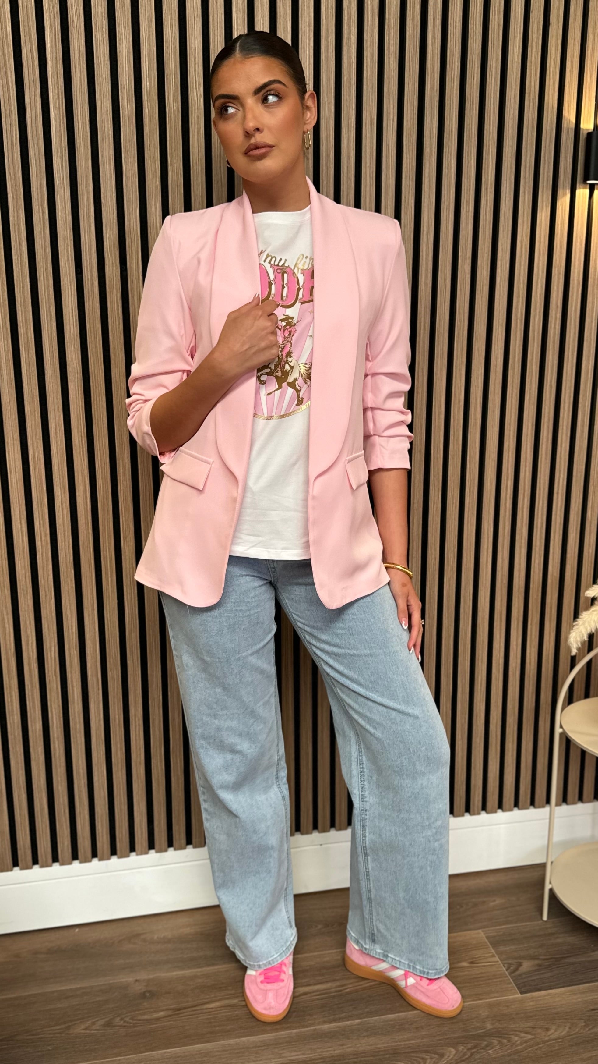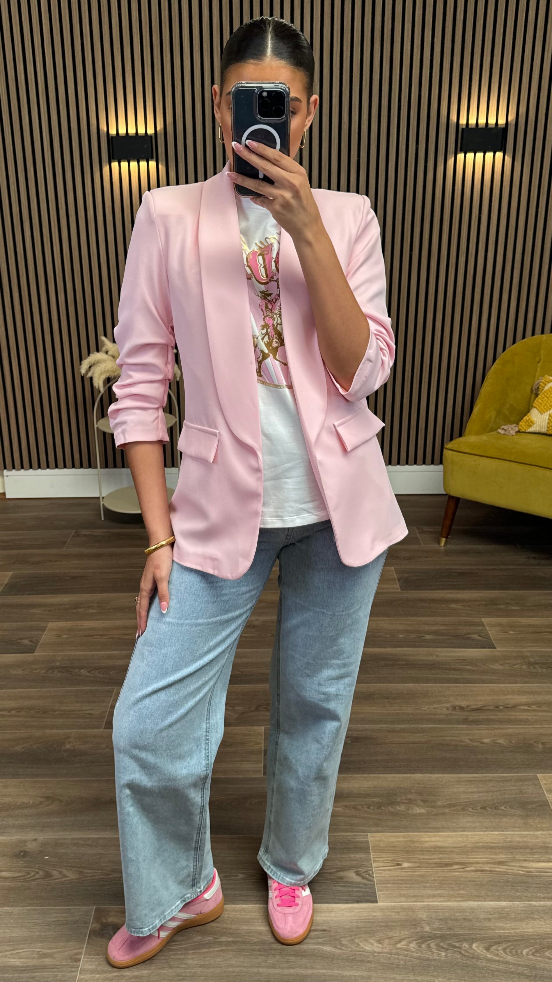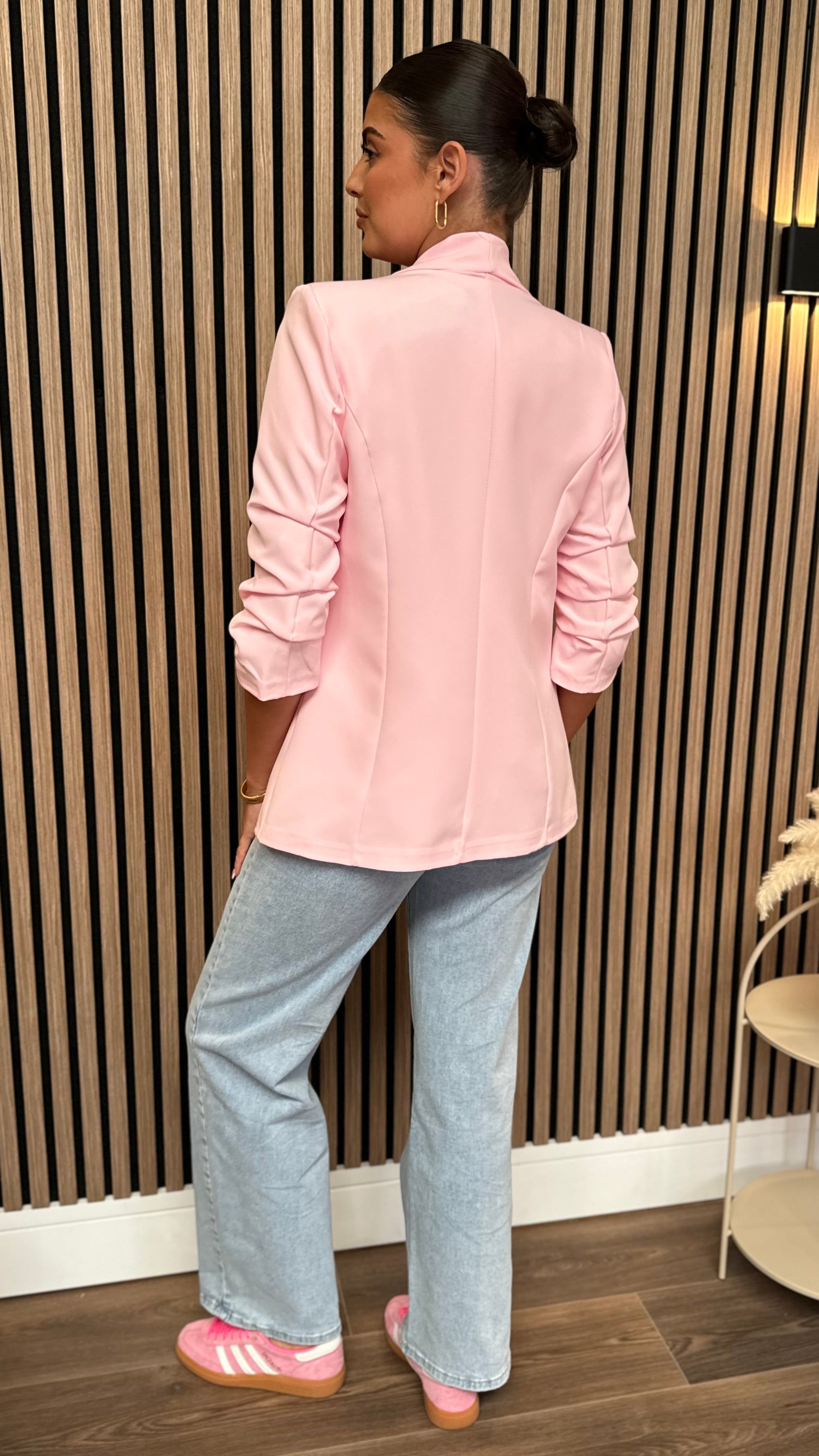 Look sharp and feel comfy with this McKinley Light Pink Ruched Sleeve Blazer! It's got all the features you need and then some: ruched sleeves, a trendy collar detail, faux pockets, and a lining to keep you comfortable 🔥
