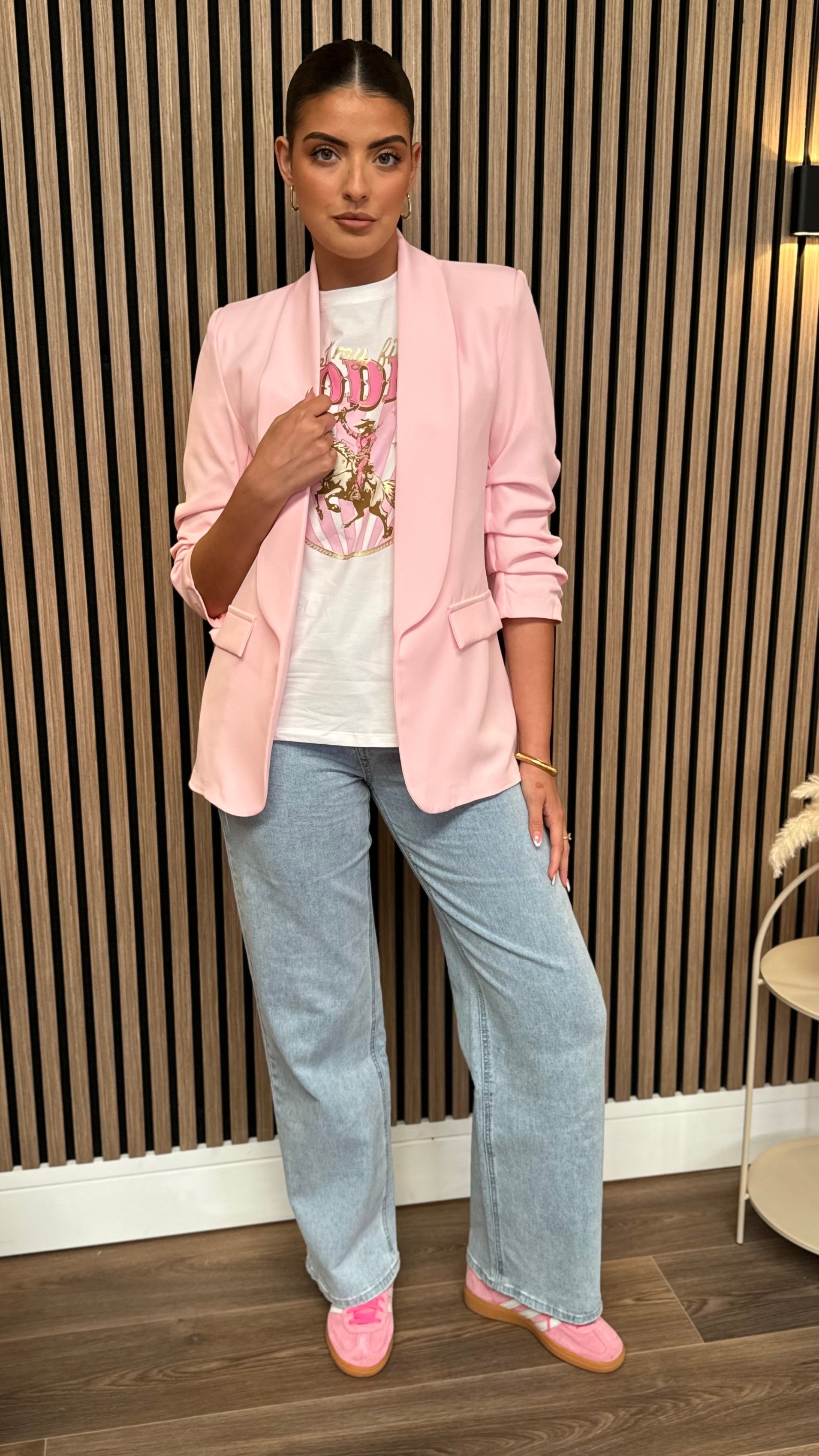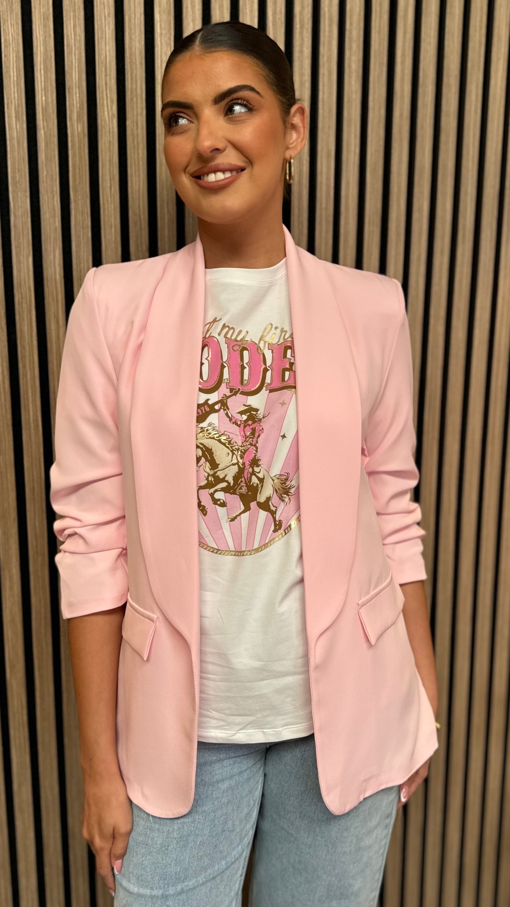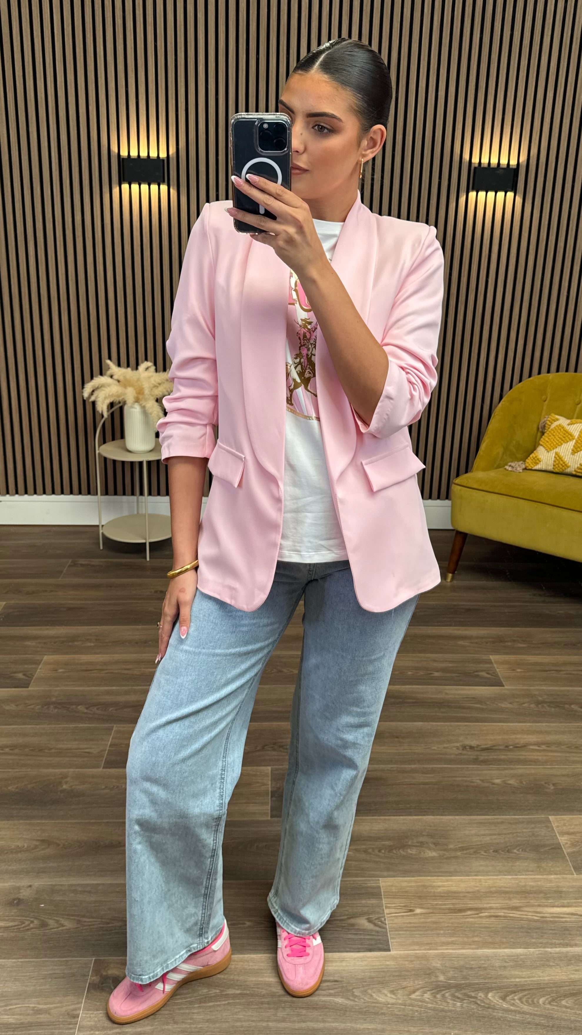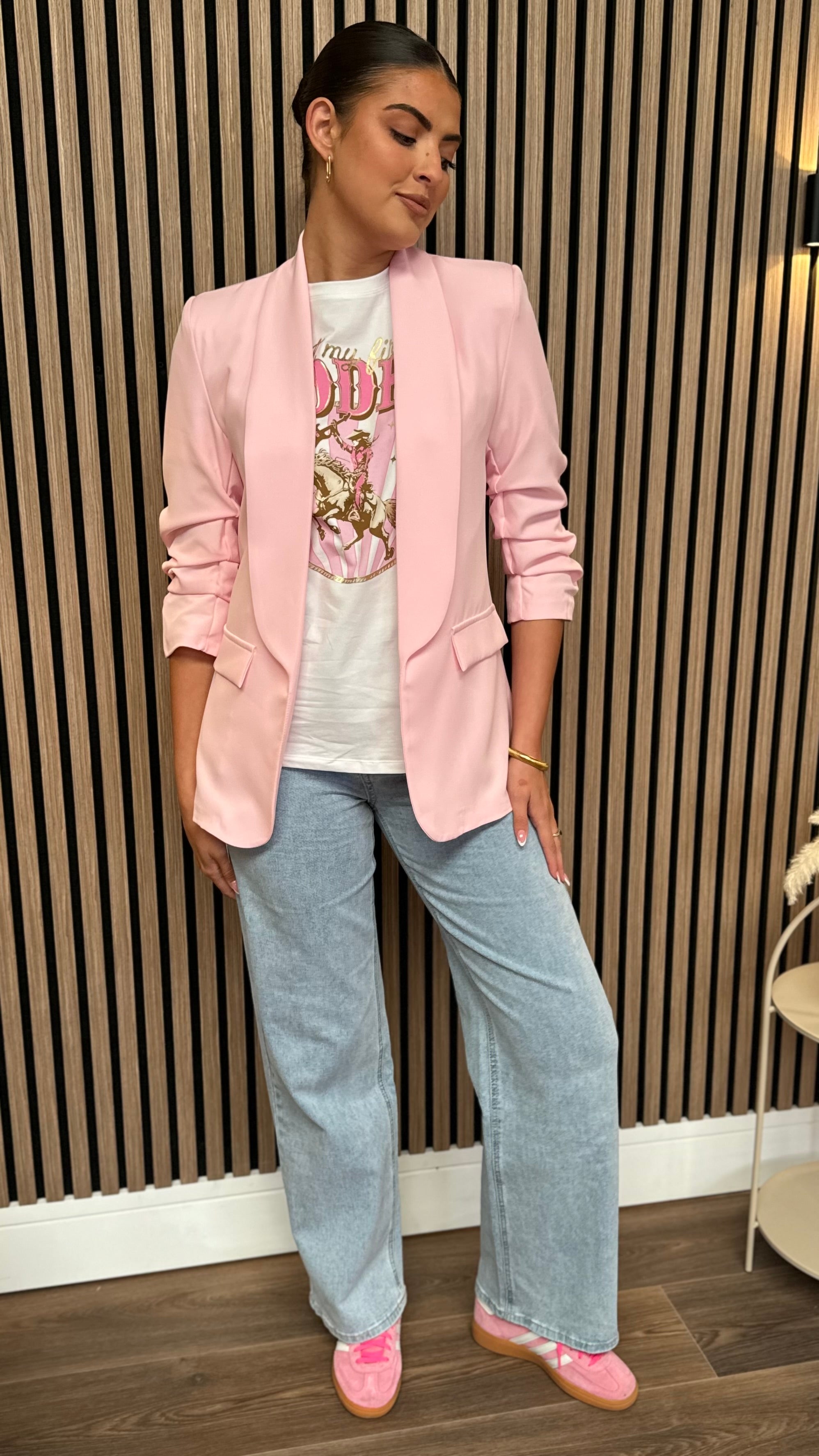 Look sharp and feel comfy with this McKinley Light Pink Ruched Sleeve Blazer! It's got all the features you need and then some: ruched sleeves, a trendy collar detail, faux pockets, and a lining to keep you comfortable 🔥