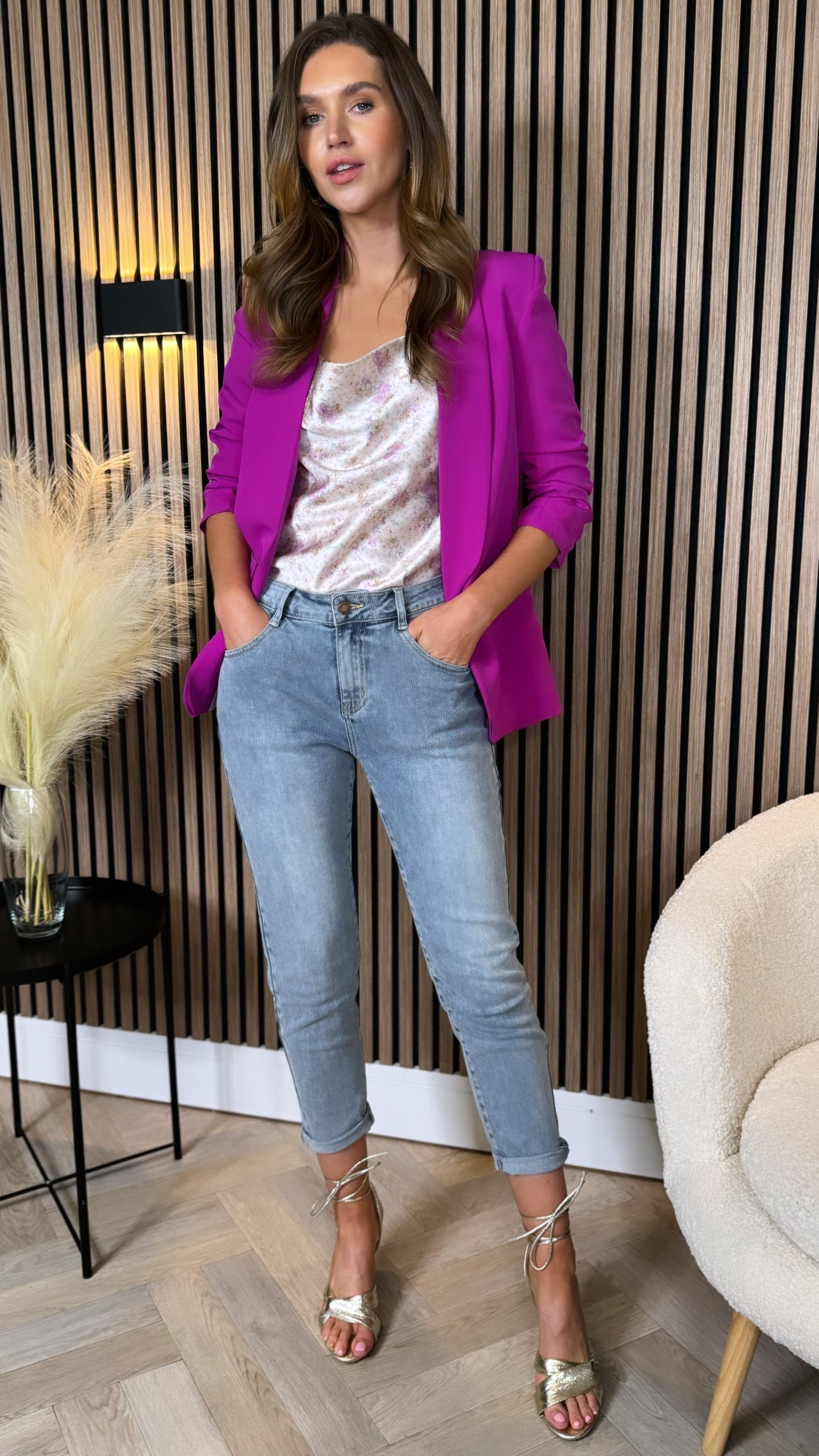 Sizing info: Our model Lauren is wearing the S and she is usually a UK 8. We recommend sticking with your usual size unless you are busty/ broad on the back or like your blazer to feel a little more roomy. S = UK 8-10, M = UK 10-12, L = UK 12-14.