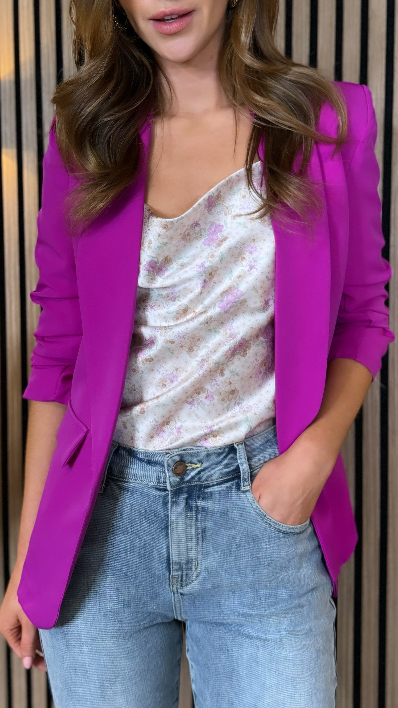 Look sharp and feel comfy with this McKinley Plum Ruched Sleeve Blazer! It's got all the features you need and then some: ruched sleeves, a trendy collar detail, faux pockets, and a lining to keep you comfortable 🔥