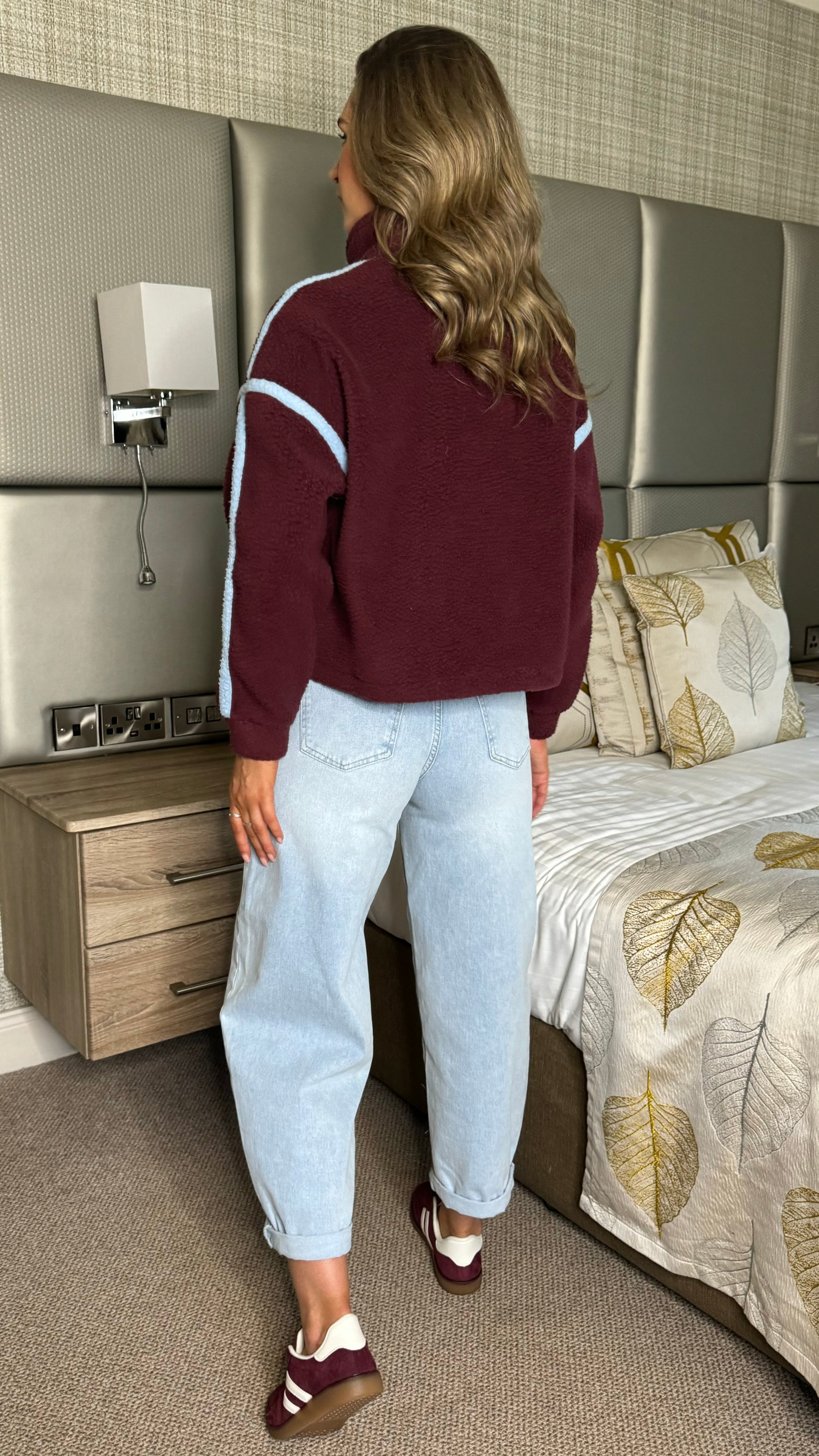 Cosy up in style with the Mollie Plum & Blue Contrast Zip Fleece – your new go-to for effortless cool. This borg fleece beauty features eye-catching contrast details that pop, a handy quarter zip for easy layering, and a drawstring hem to lock in warmth. Perfect for those days when you want comfort without compromising on fashion. Snug, chic, and ready for anything.