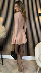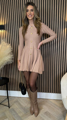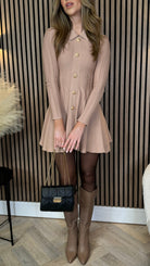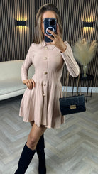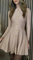 Nessa Beige Button Down Collared Knit Mini Dress