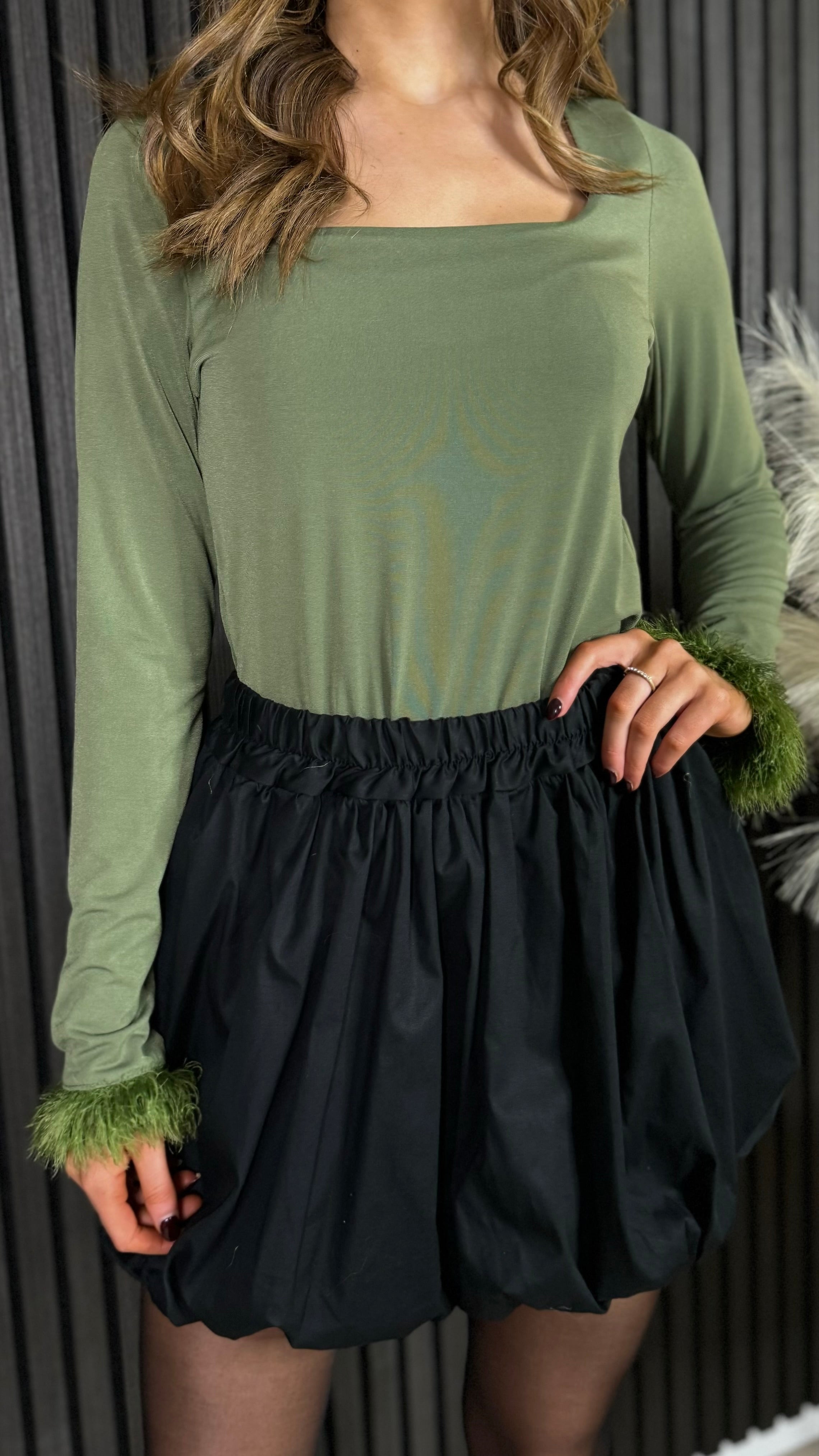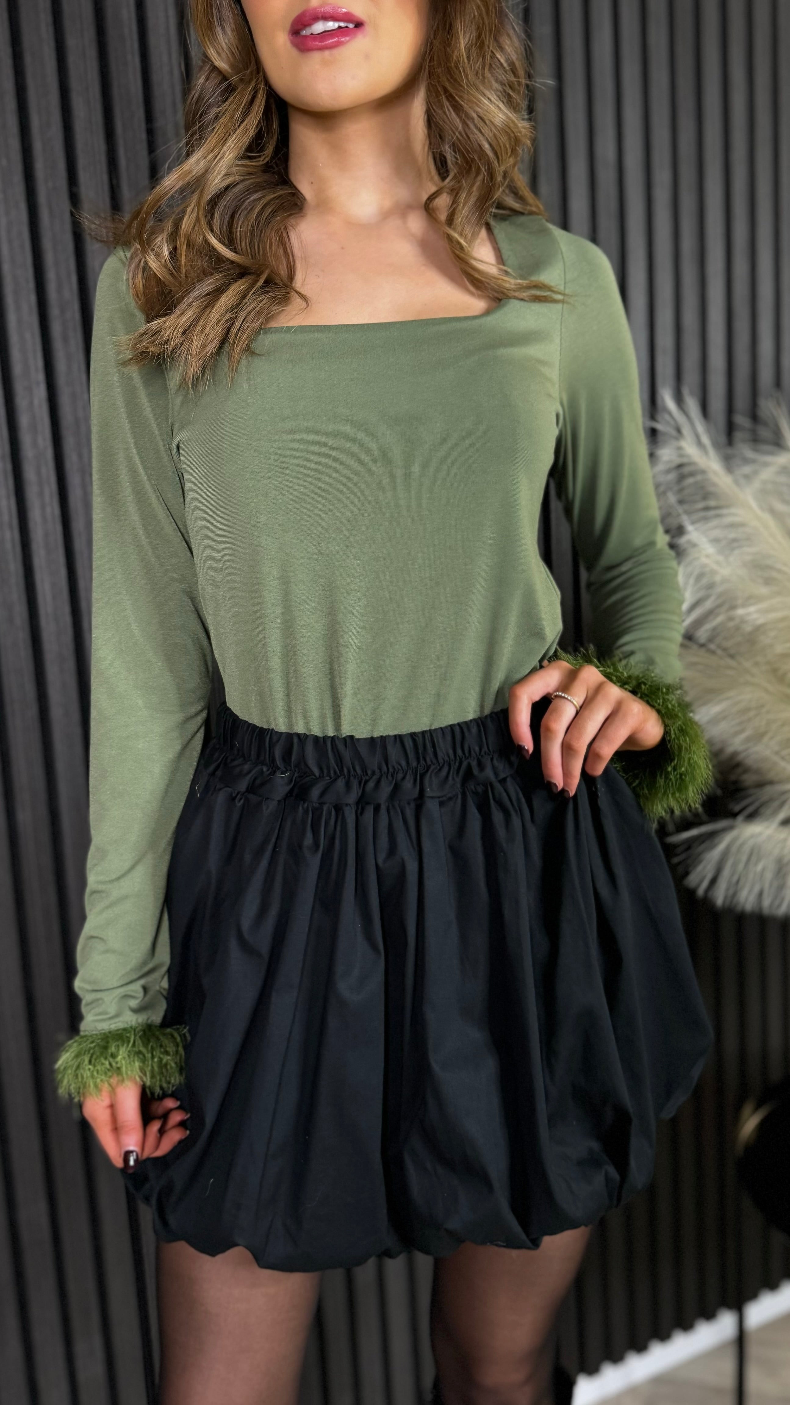 Nyla Black Puff Style Bubble Mini Skirt