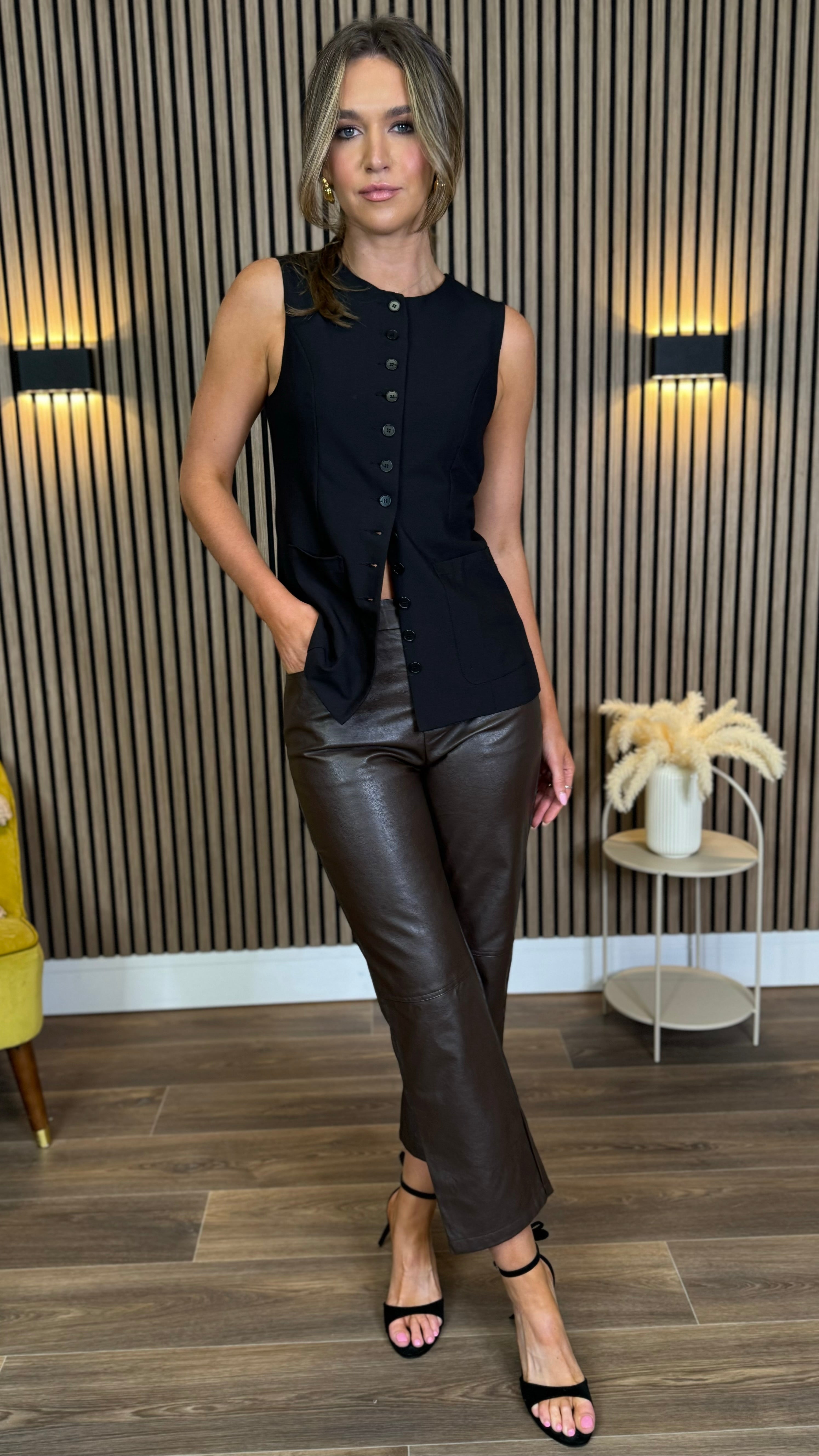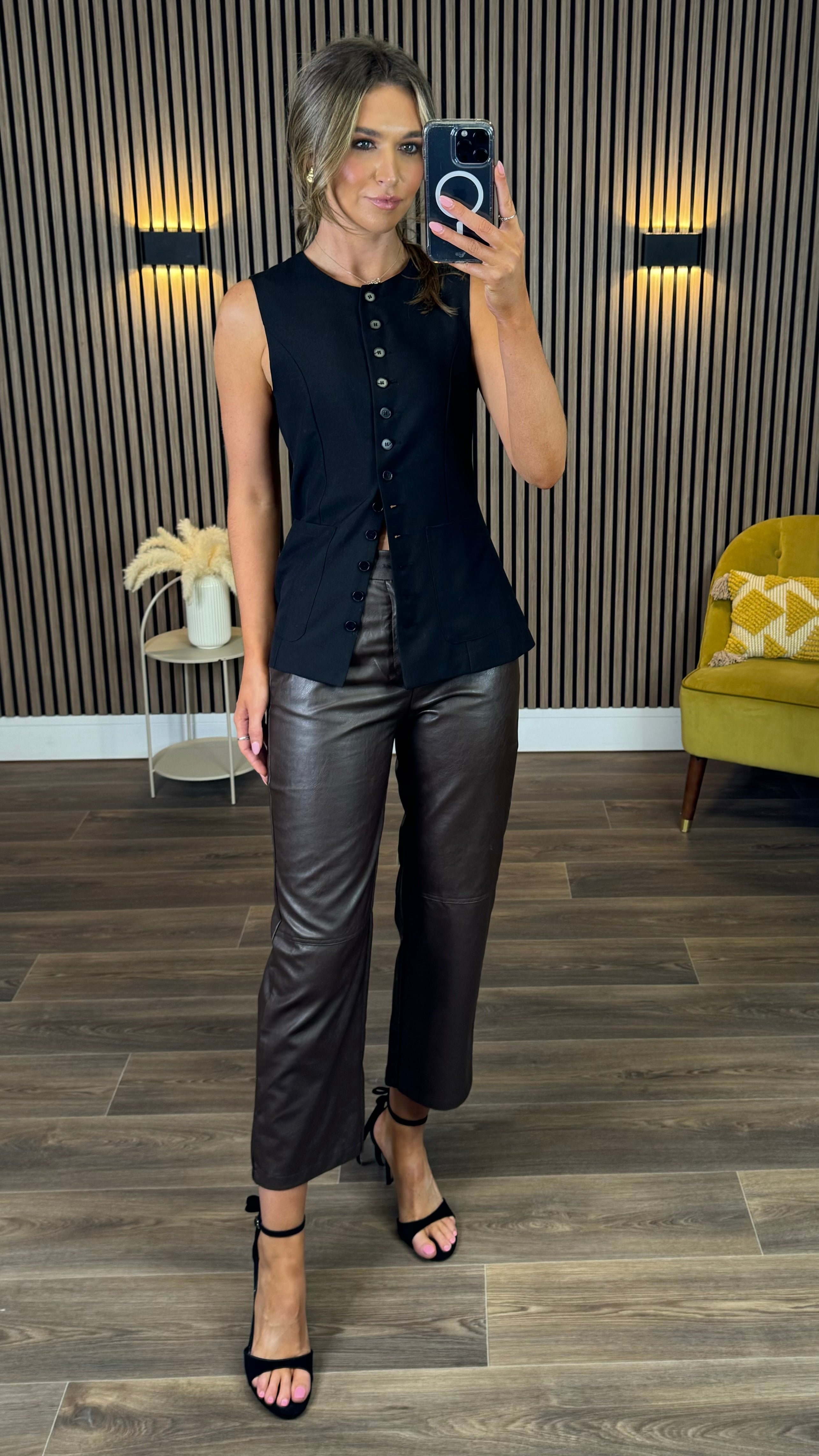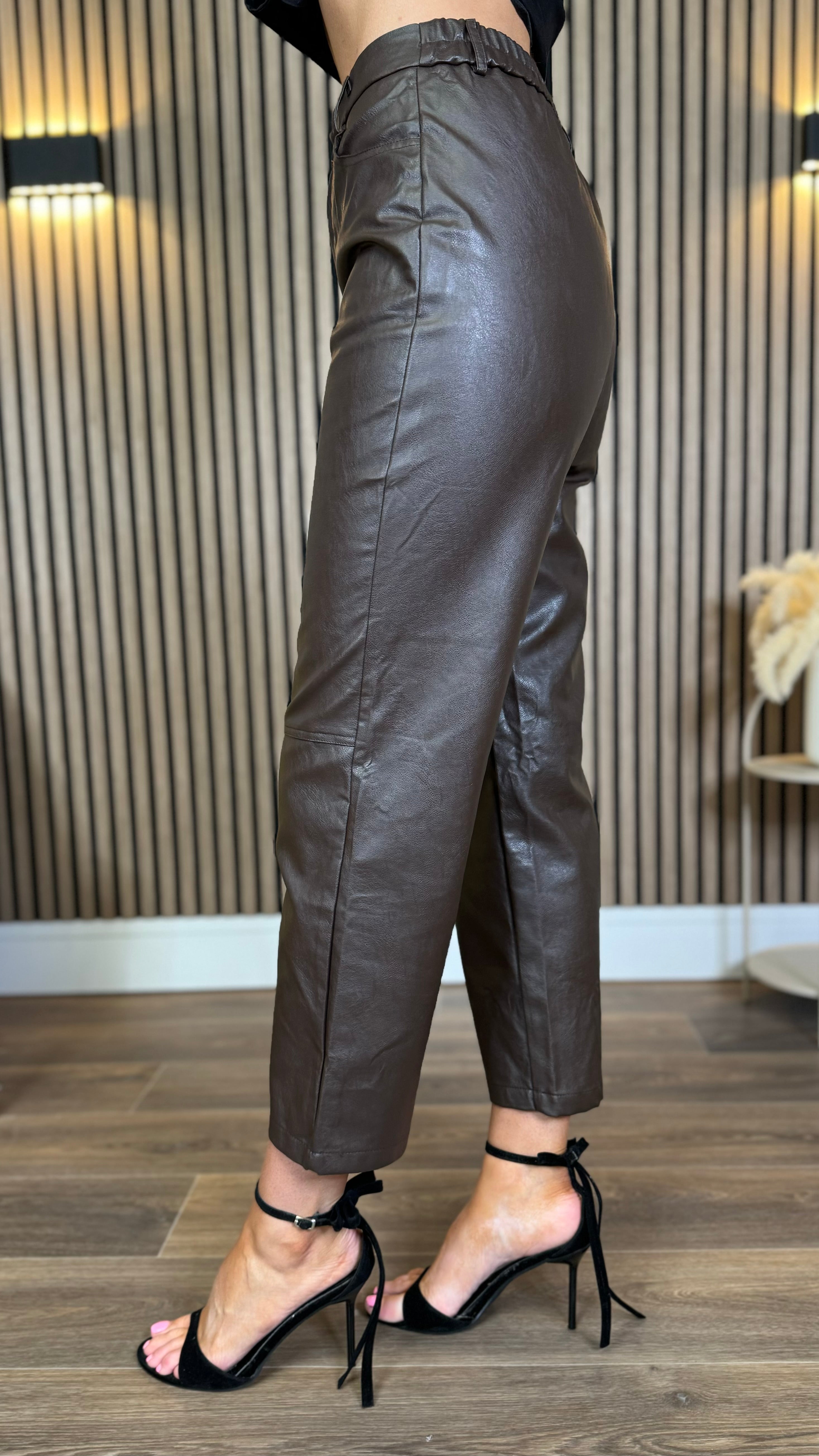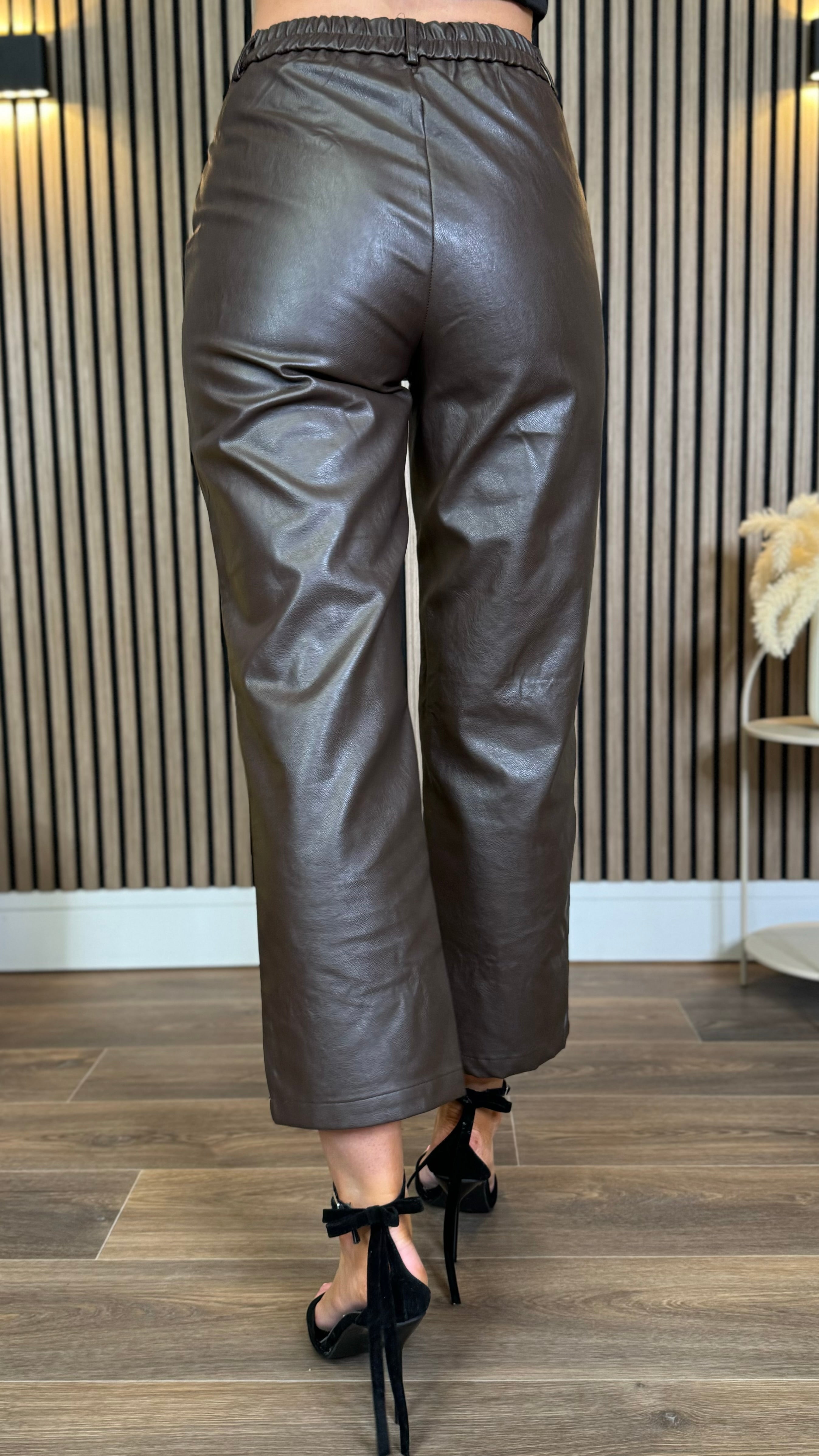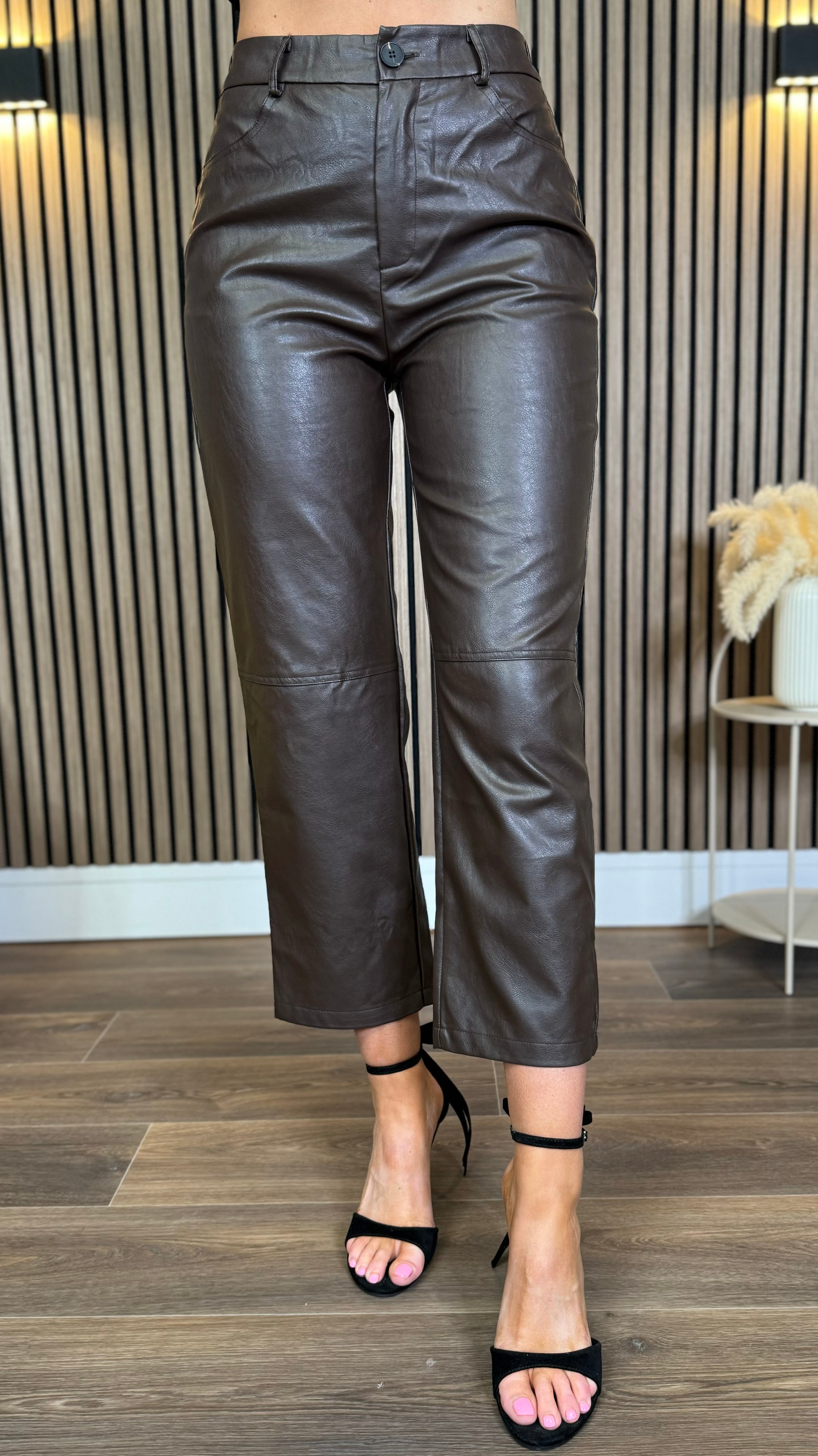Oaklee Dark Brown Faux Leather Cropped Trousers (PRE-ORDER)