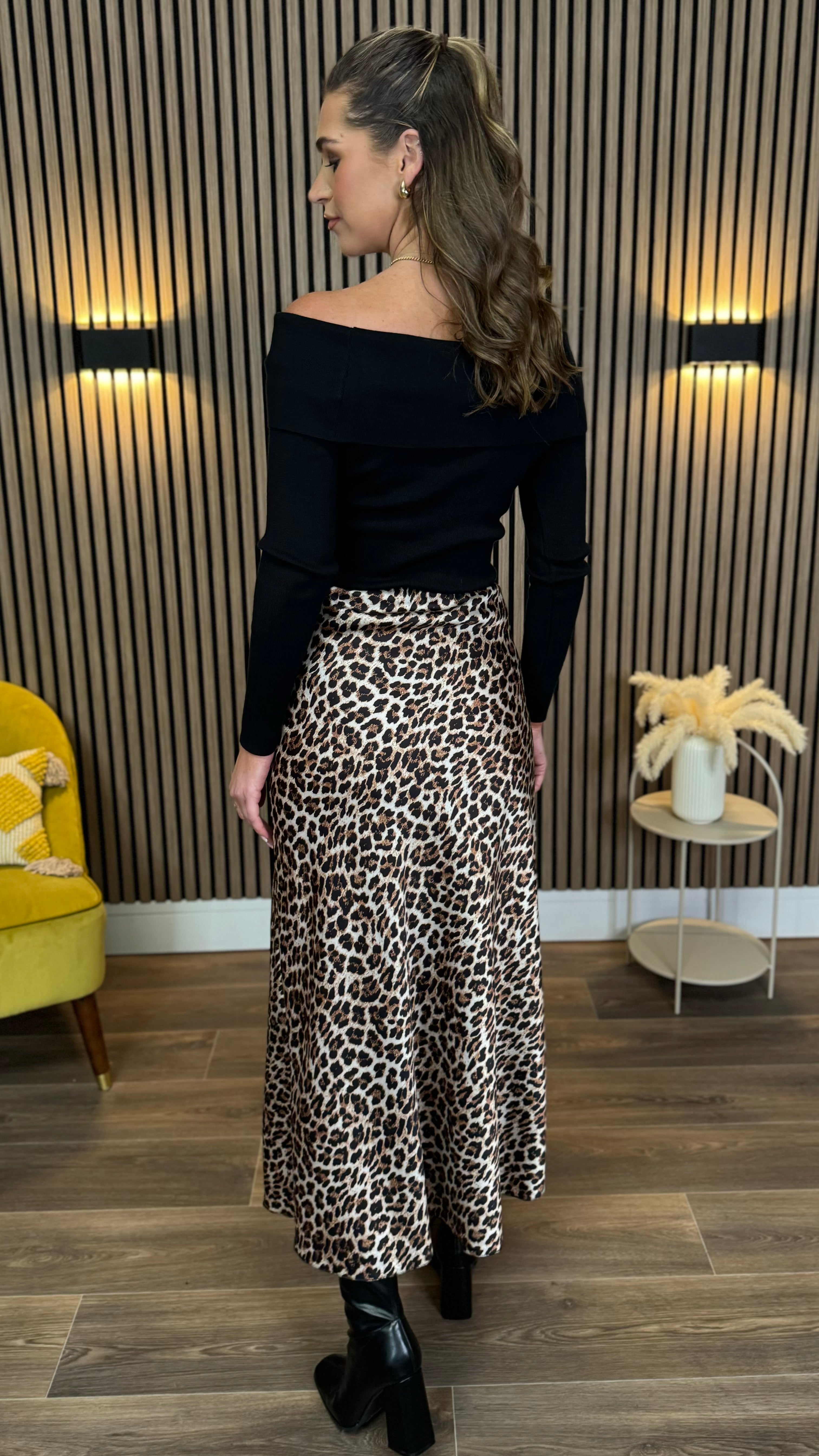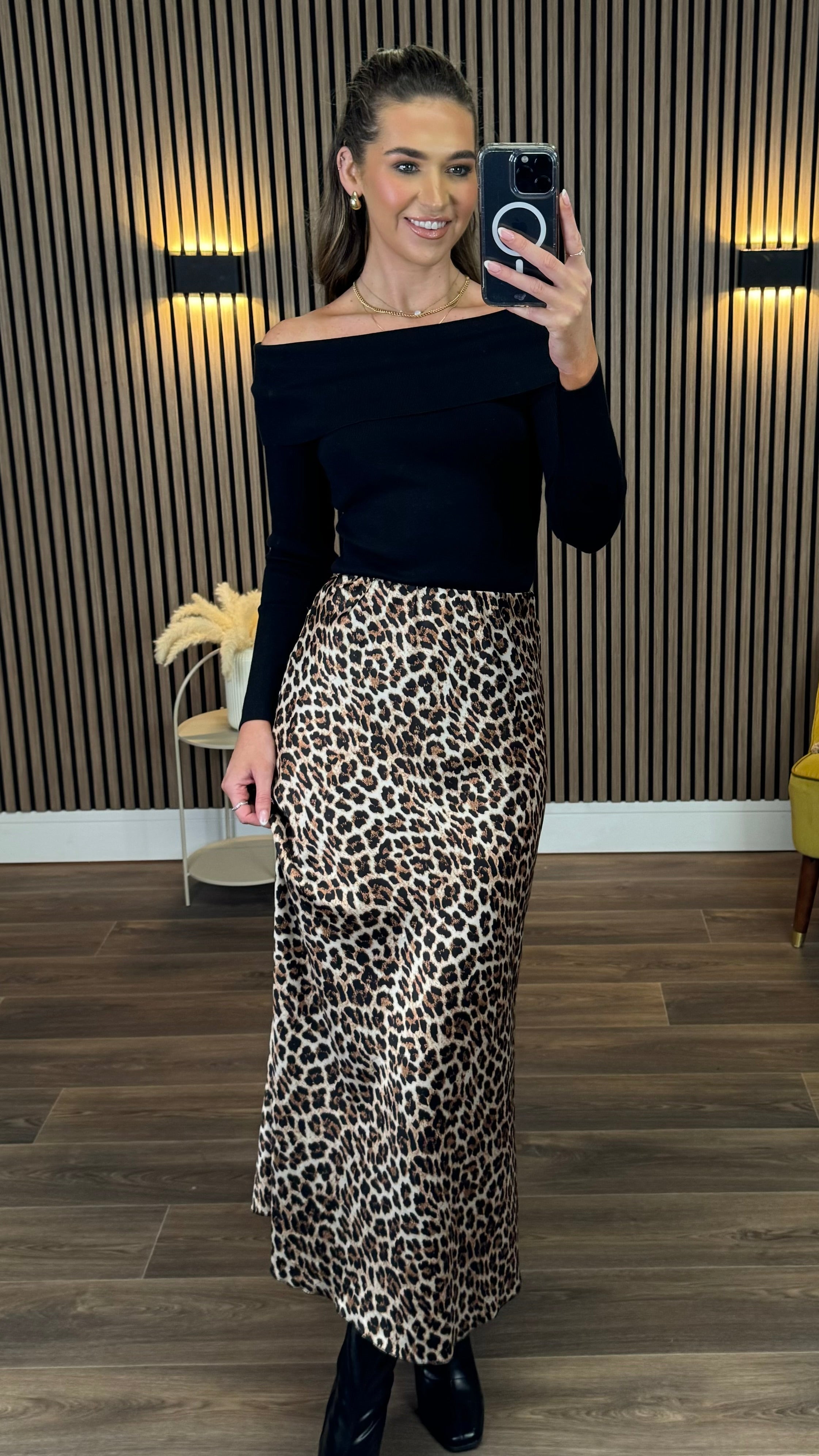 Embrace effortless charm with this Onyx Black Bardot Knitted Top. Its playful bardot neckline adds a flirty touch, while the long sleeves and soft knitted fabric keep you cozy and comfy. A versatile wardrobe staple, this top pairs perfectly with everything from jeans to skirts for endless styling fun.
