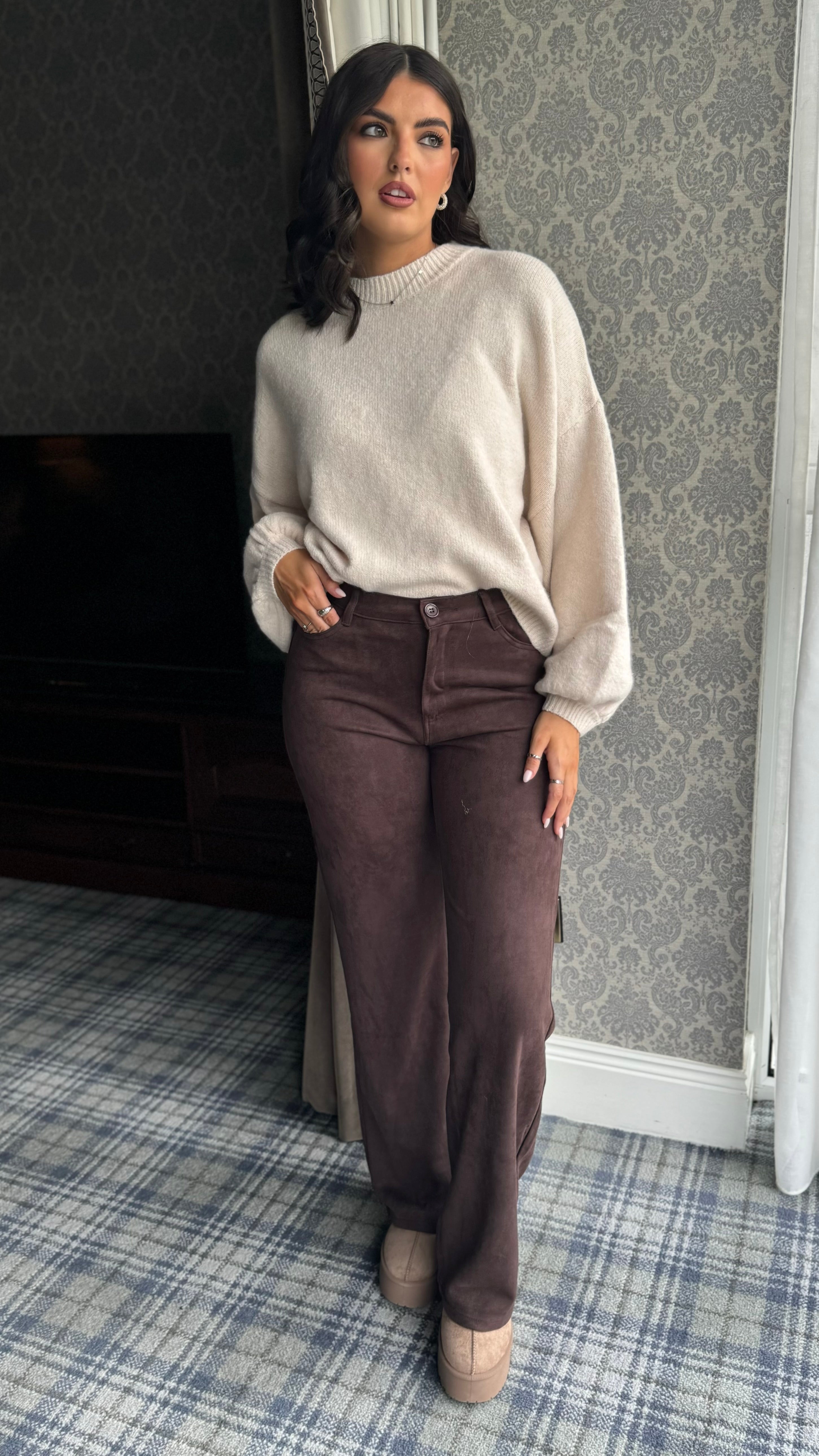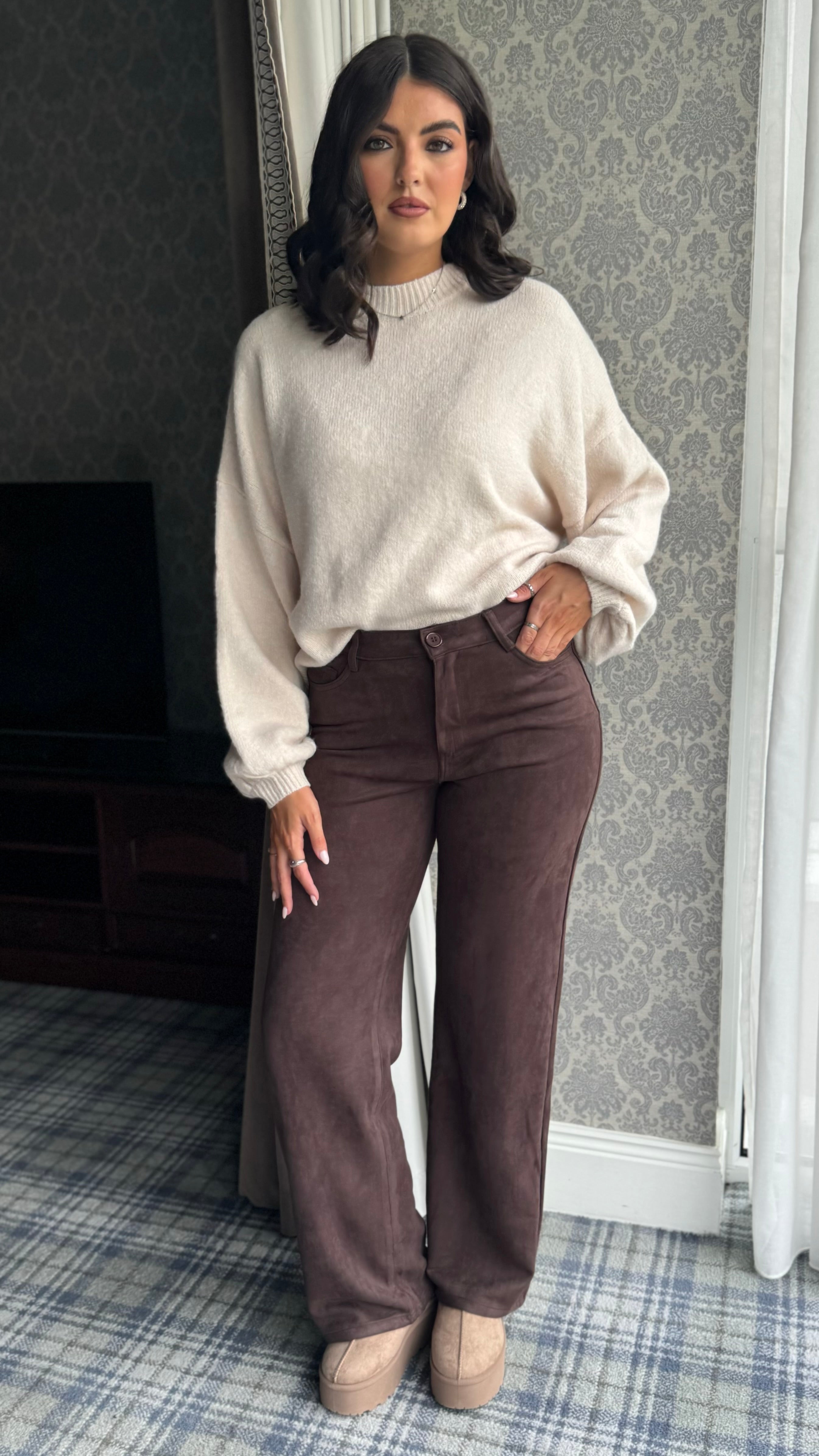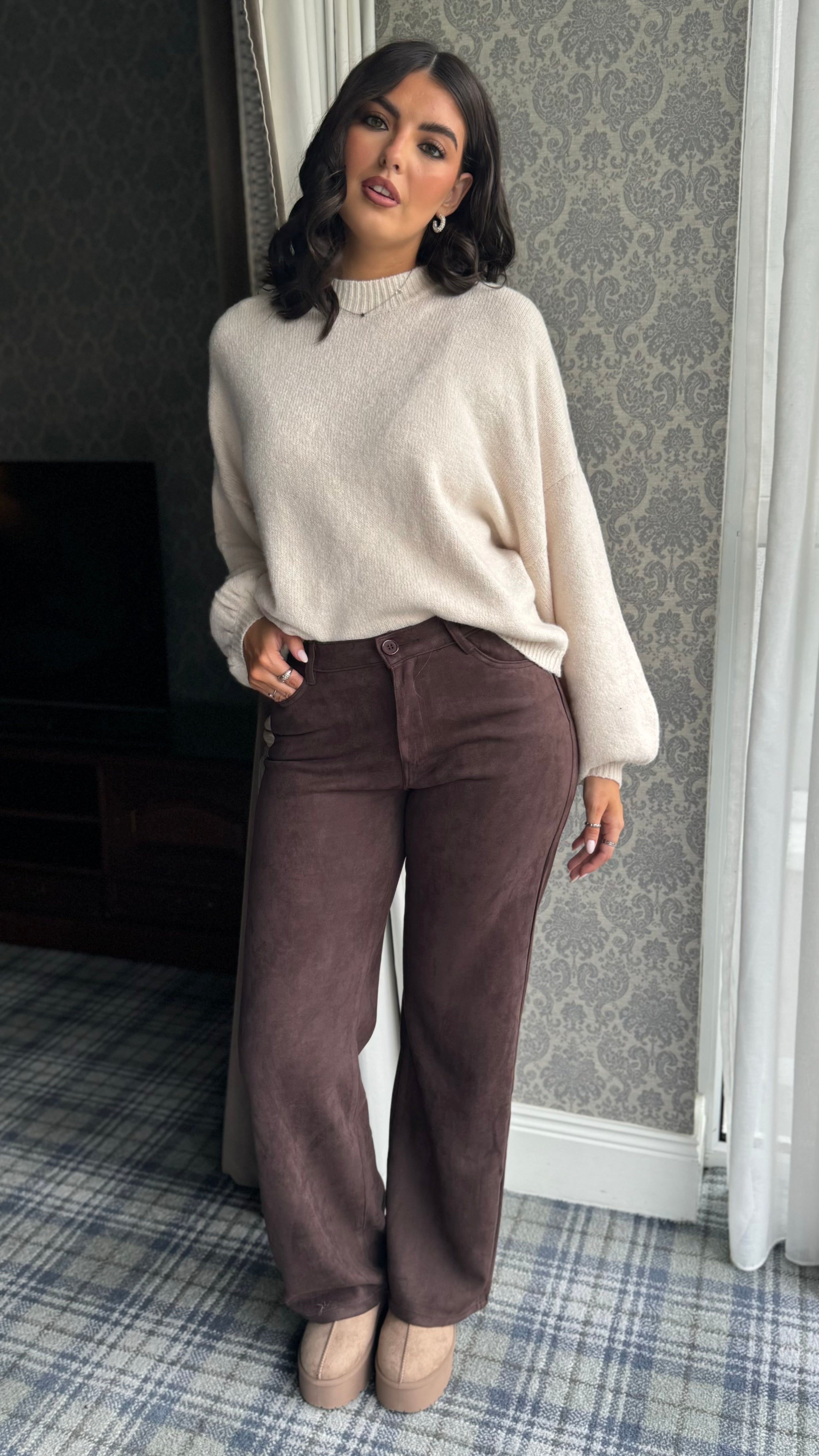 Step into style with the Paulina Chocolate Brown Faux Suede Trousers. Featuring a straight leg fit that’s effortlessly flattering, these trousers zip up the front with a handy button closure for easy wear. The rich chocolate brown faux suede adds a touch of luxe texture, making them perfect for turning heads while keeping things comfy and cool. Whether you're dressing up or going casual, these trousers bring playful sophistication to any outfit.