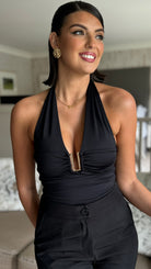 Quintessa Black Plunge Neck Top