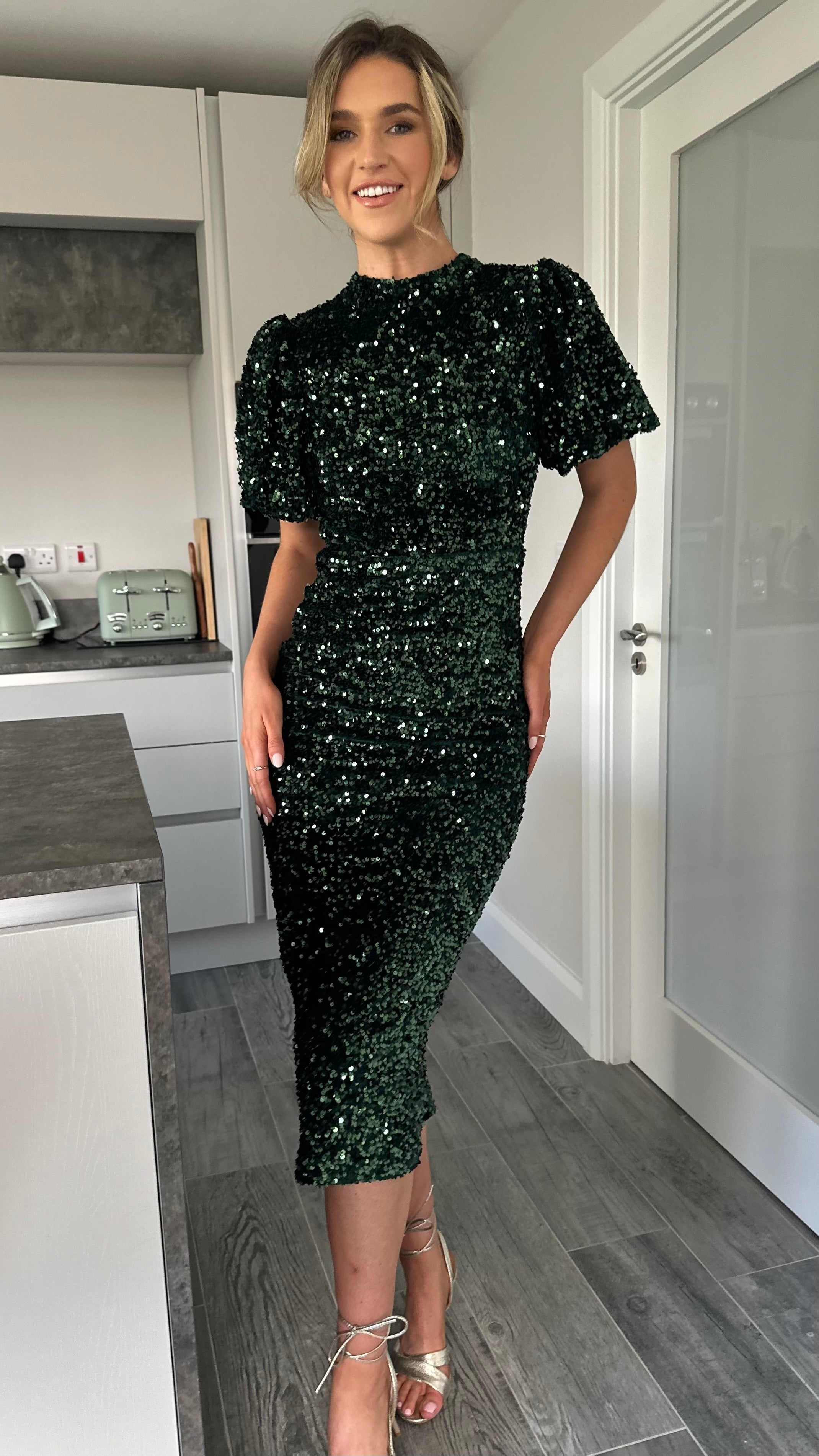 Rachelle Green Sequin Bow Back Detail Midi Dress