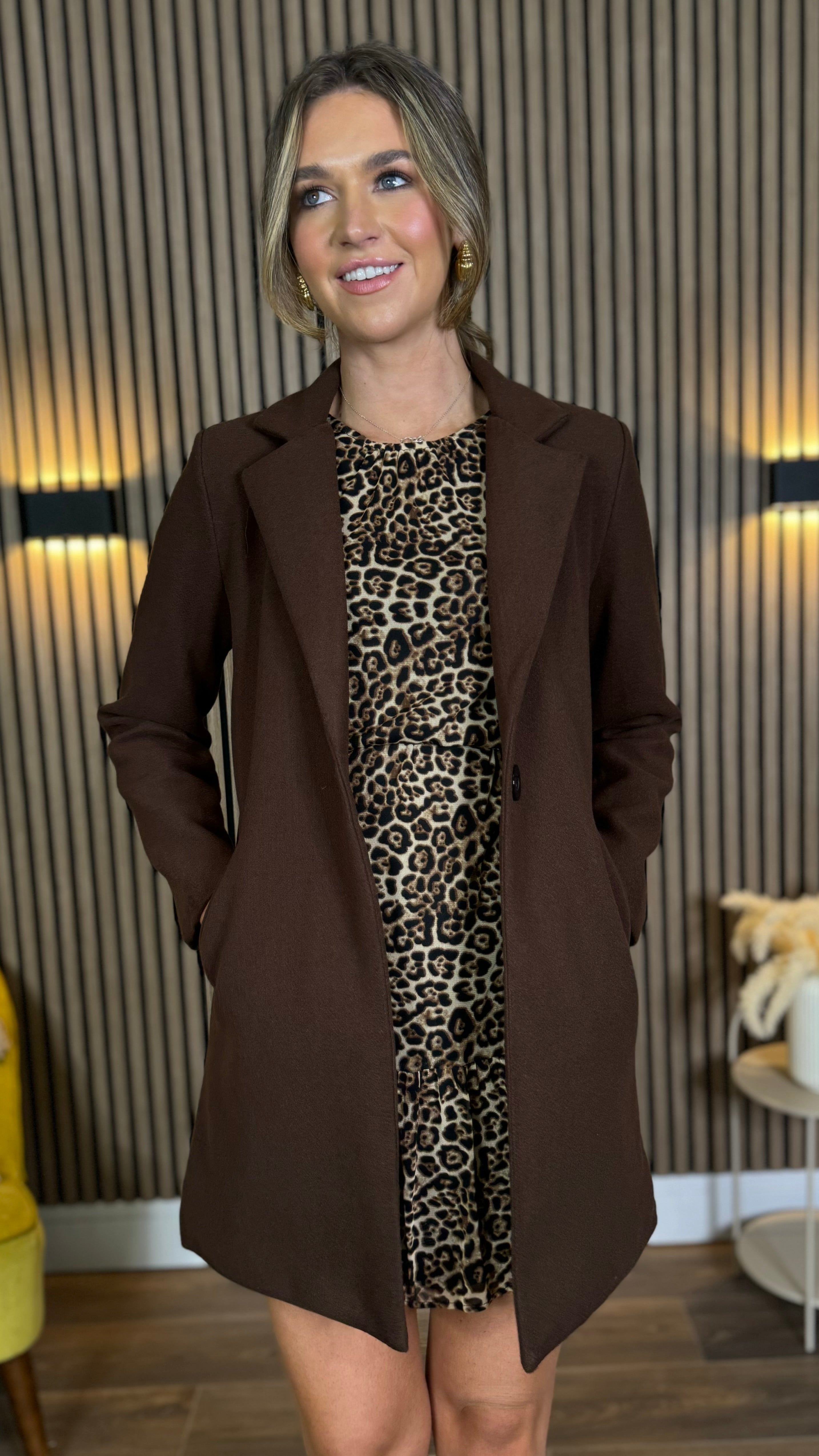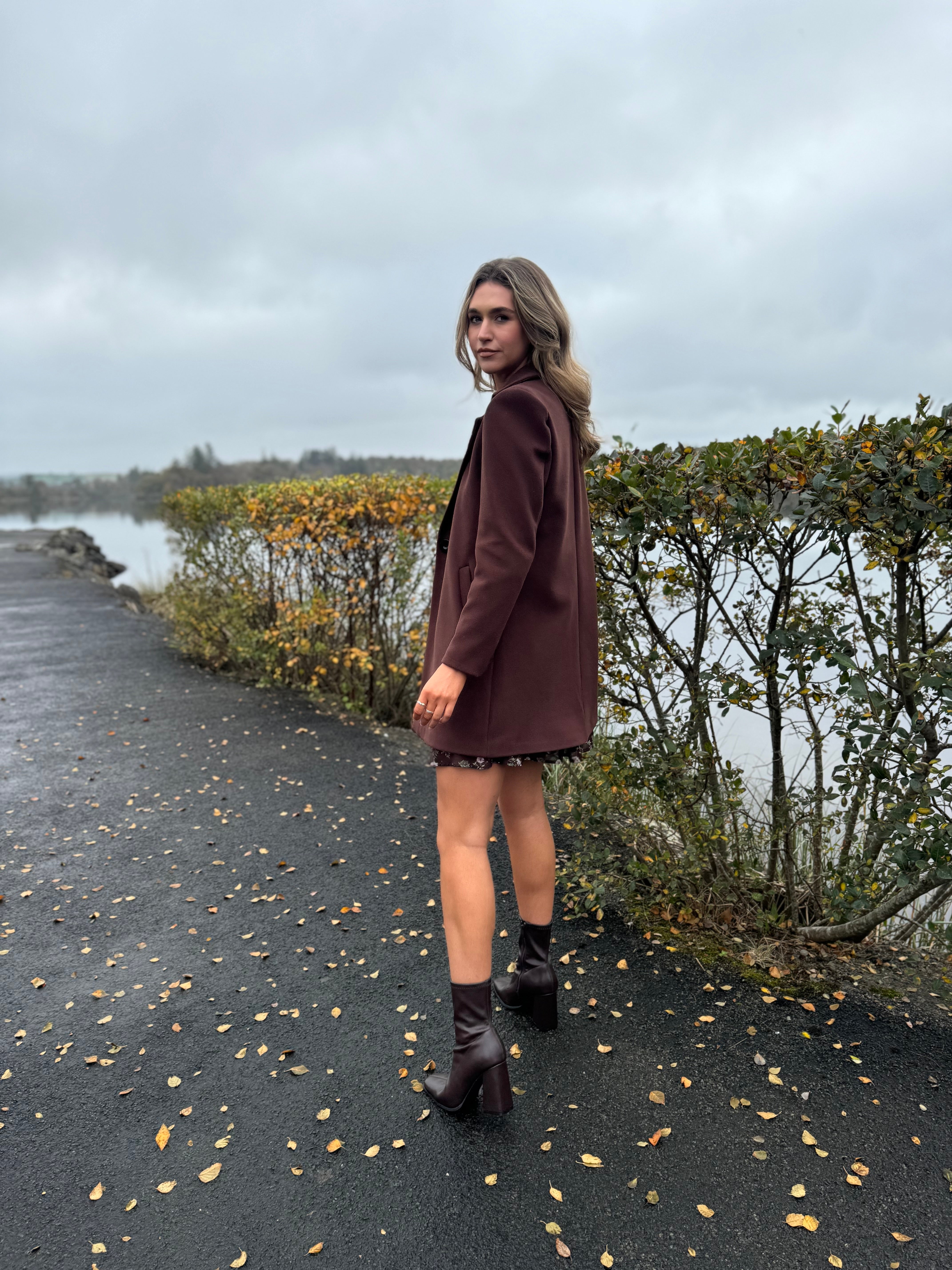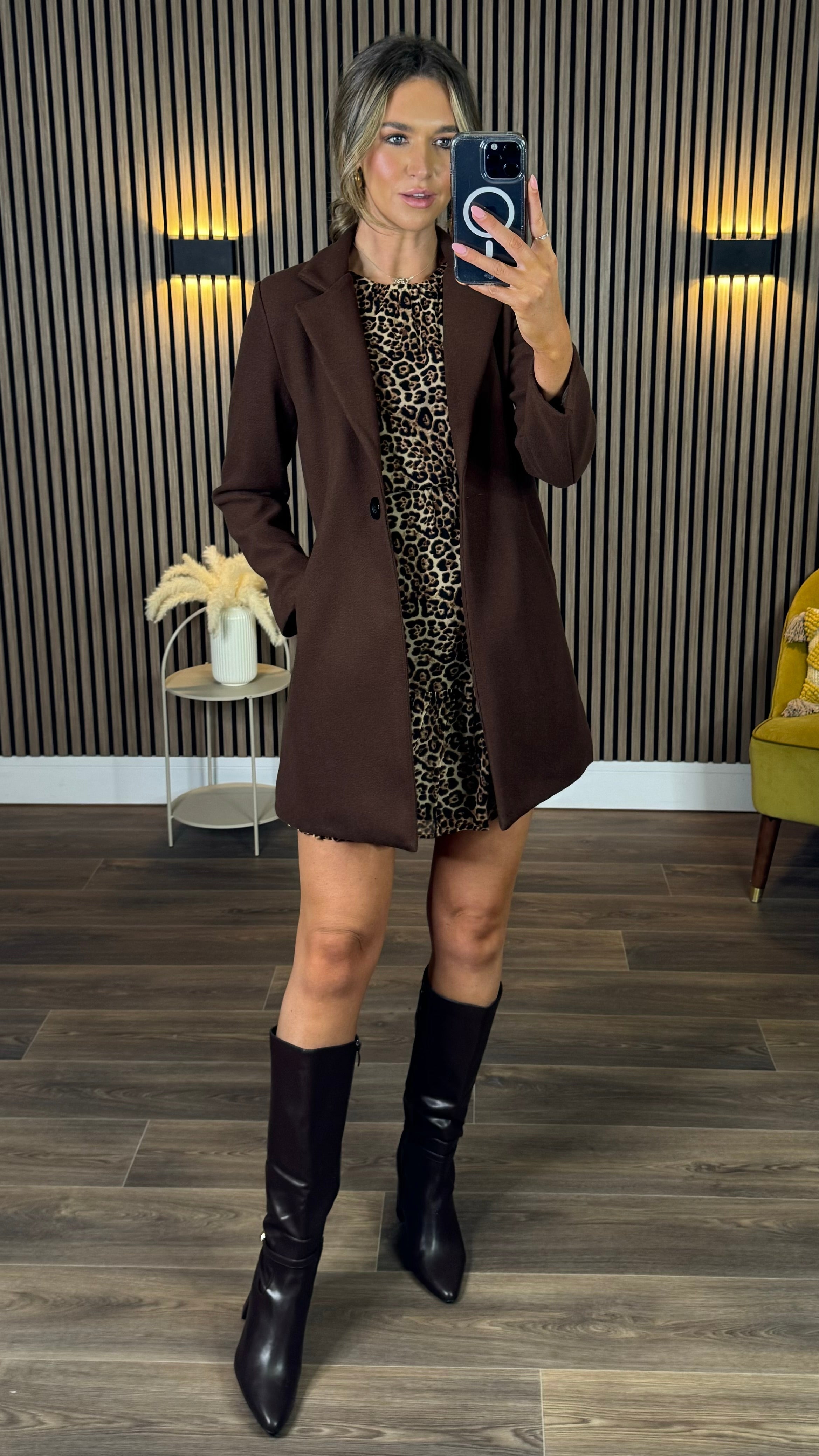 Gorge up your wardrobe with this Rosario Chocolate Brown Collared Coat - it's the perfect way to take your look from drab to fab! Crafted from a wool effect material, this stunning coat features faux pockets, button closure, and a striking back split.