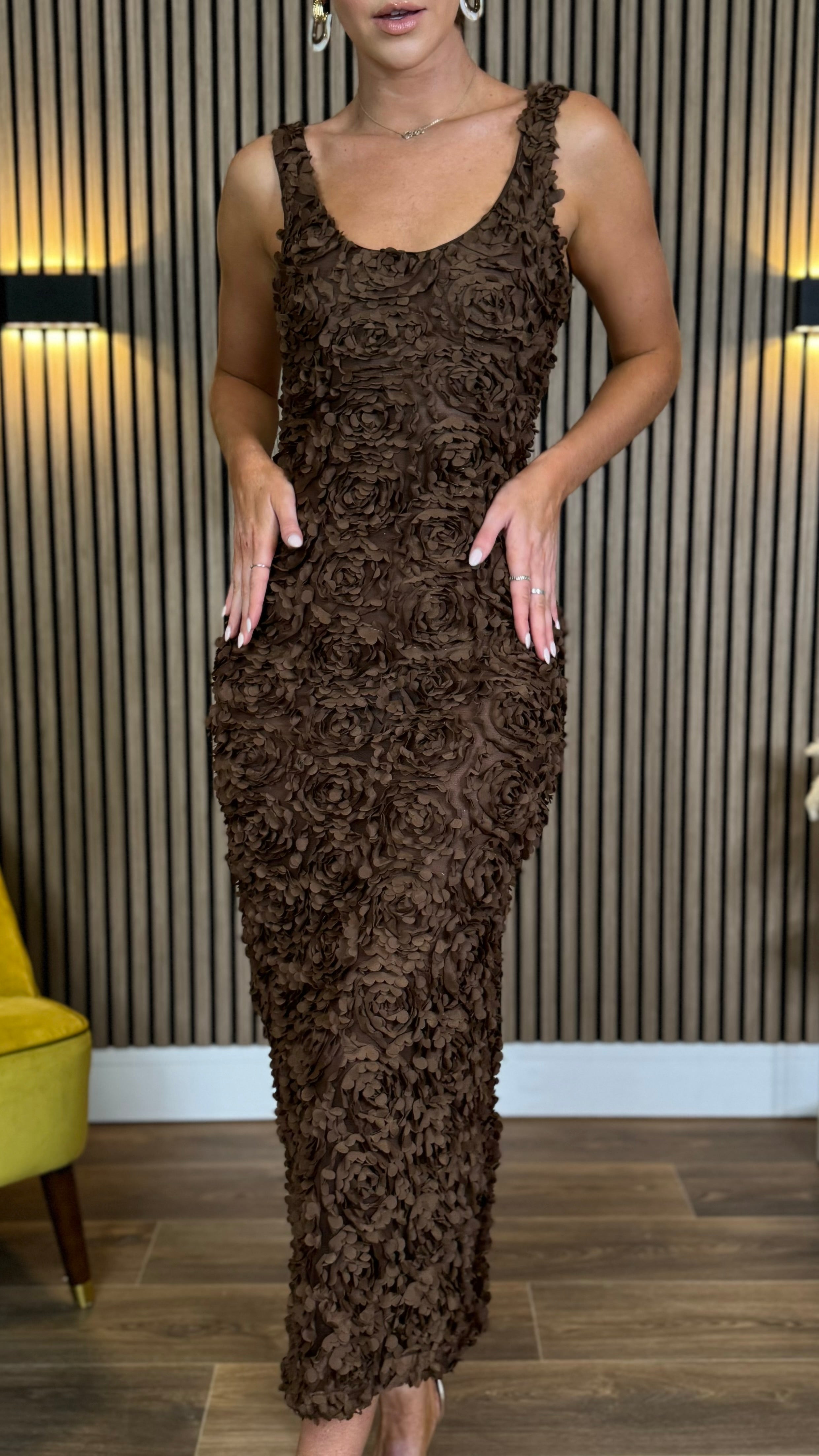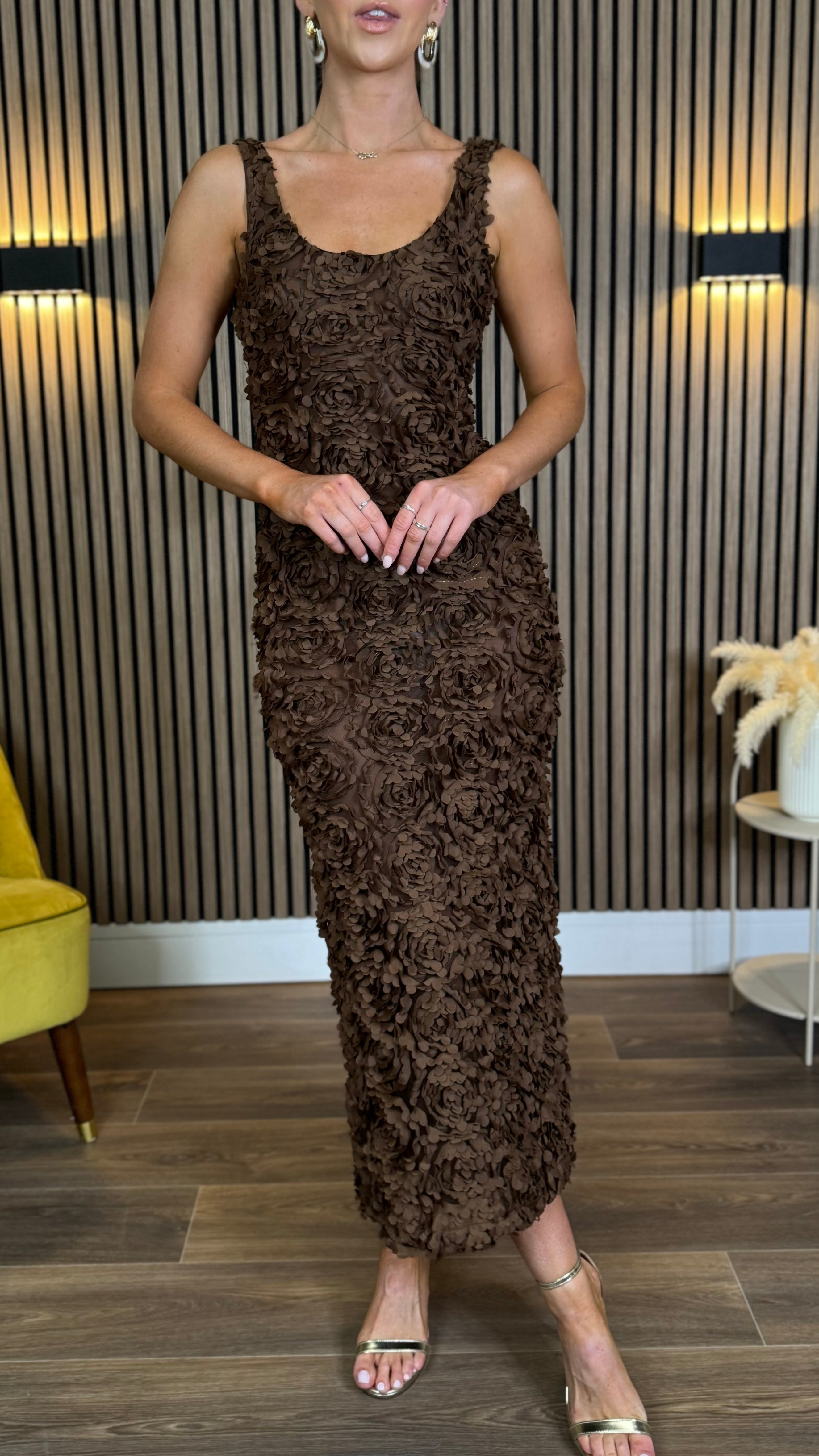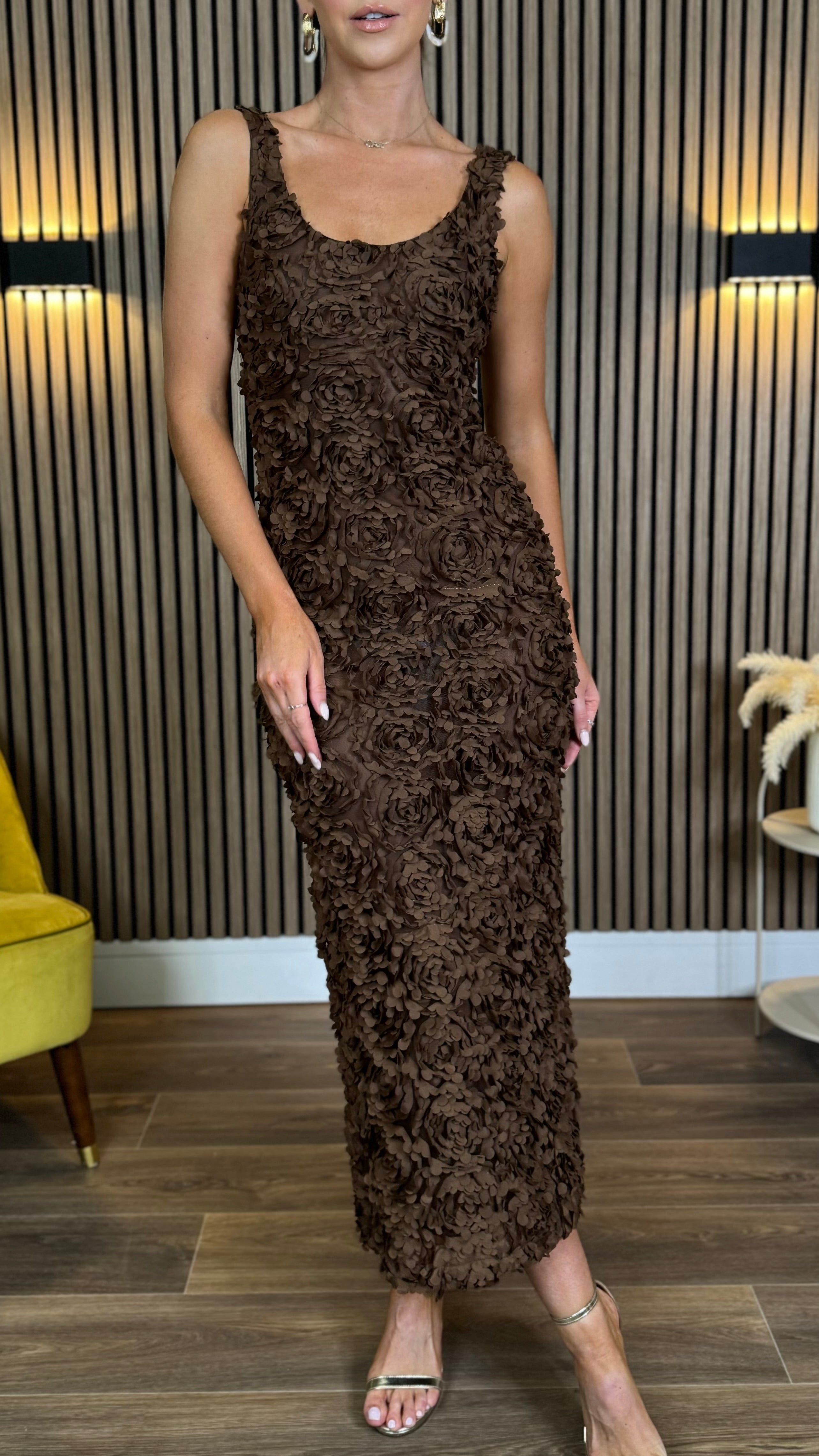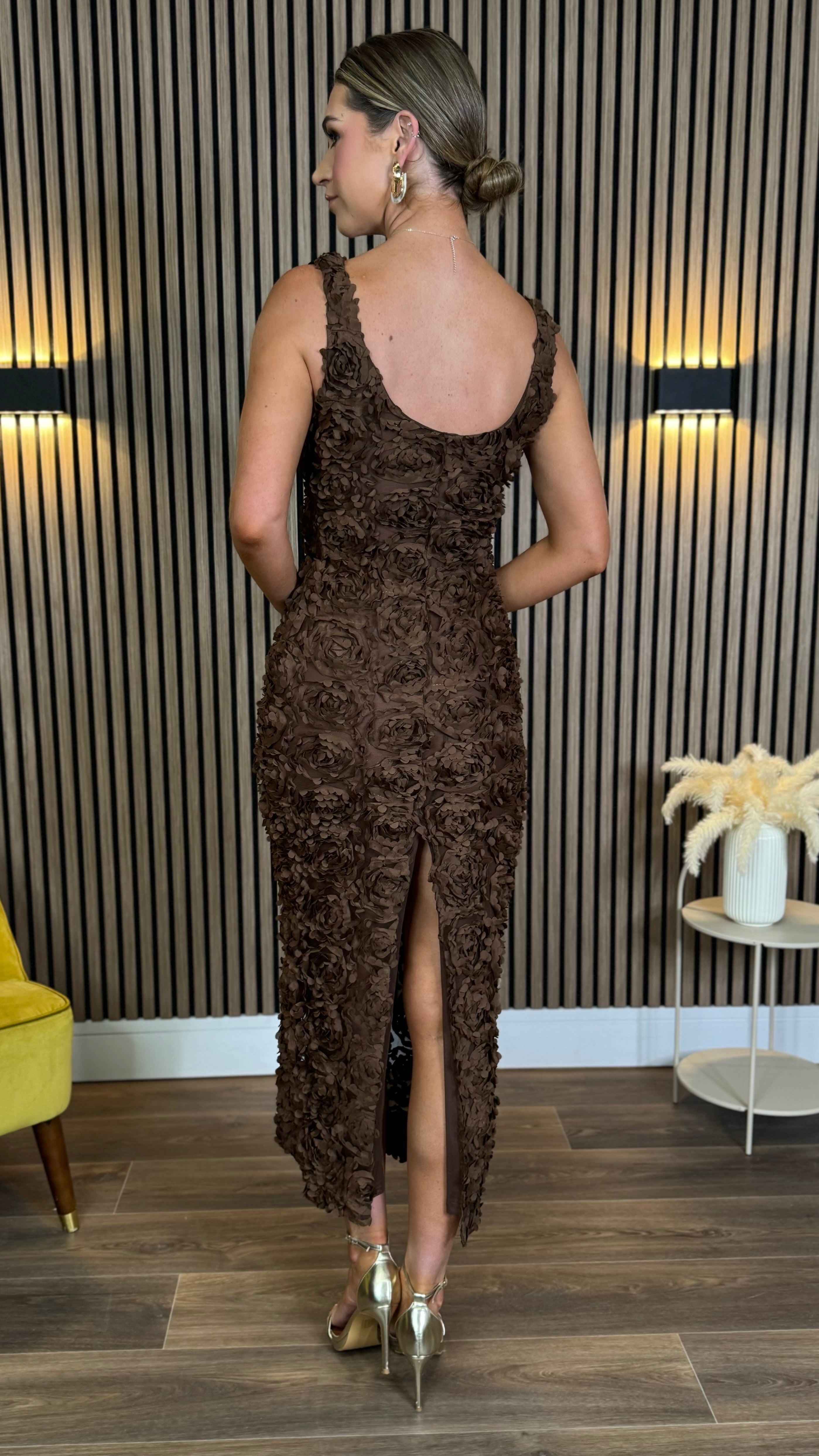 Elevate your wardrobe with the Rose Brown Floral Detail Midi Dress 🌹. This elegant piece features delicate floral accents that add a touch of refined charm. Its midi length offers a graceful silhouette, perfect for sophisticated occasions. Embrace timeless style and effortless beauty in this stunning dress.