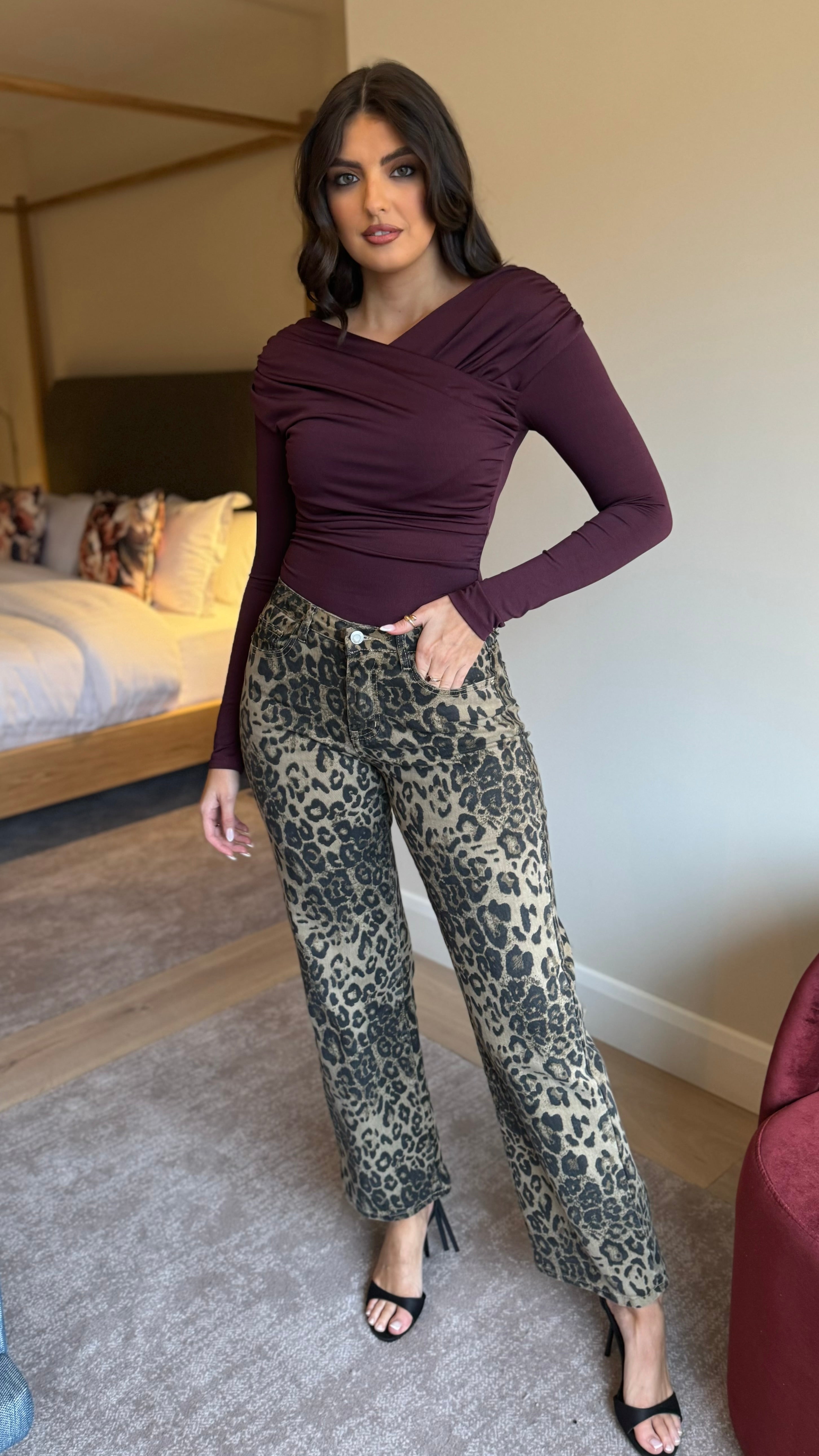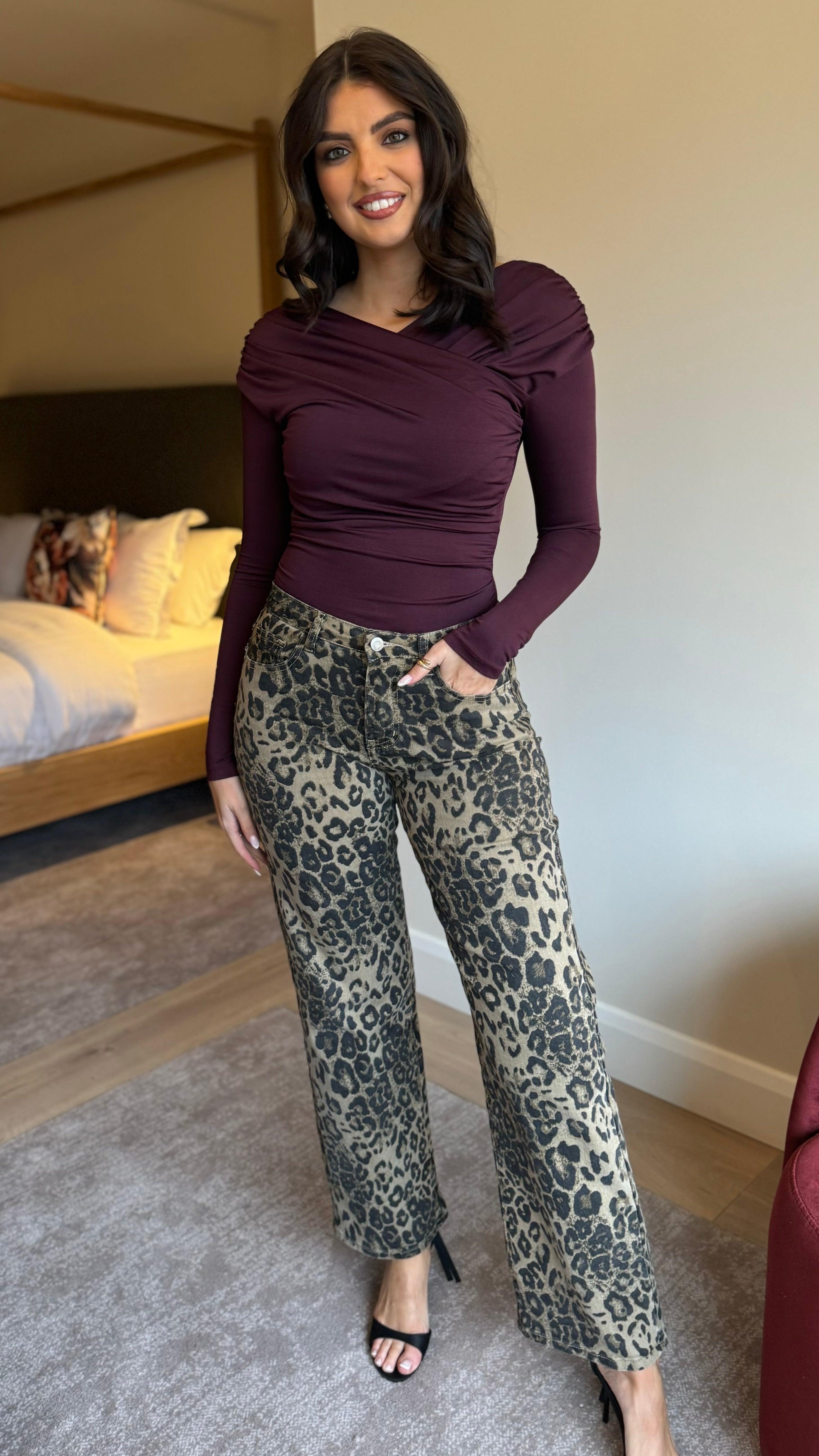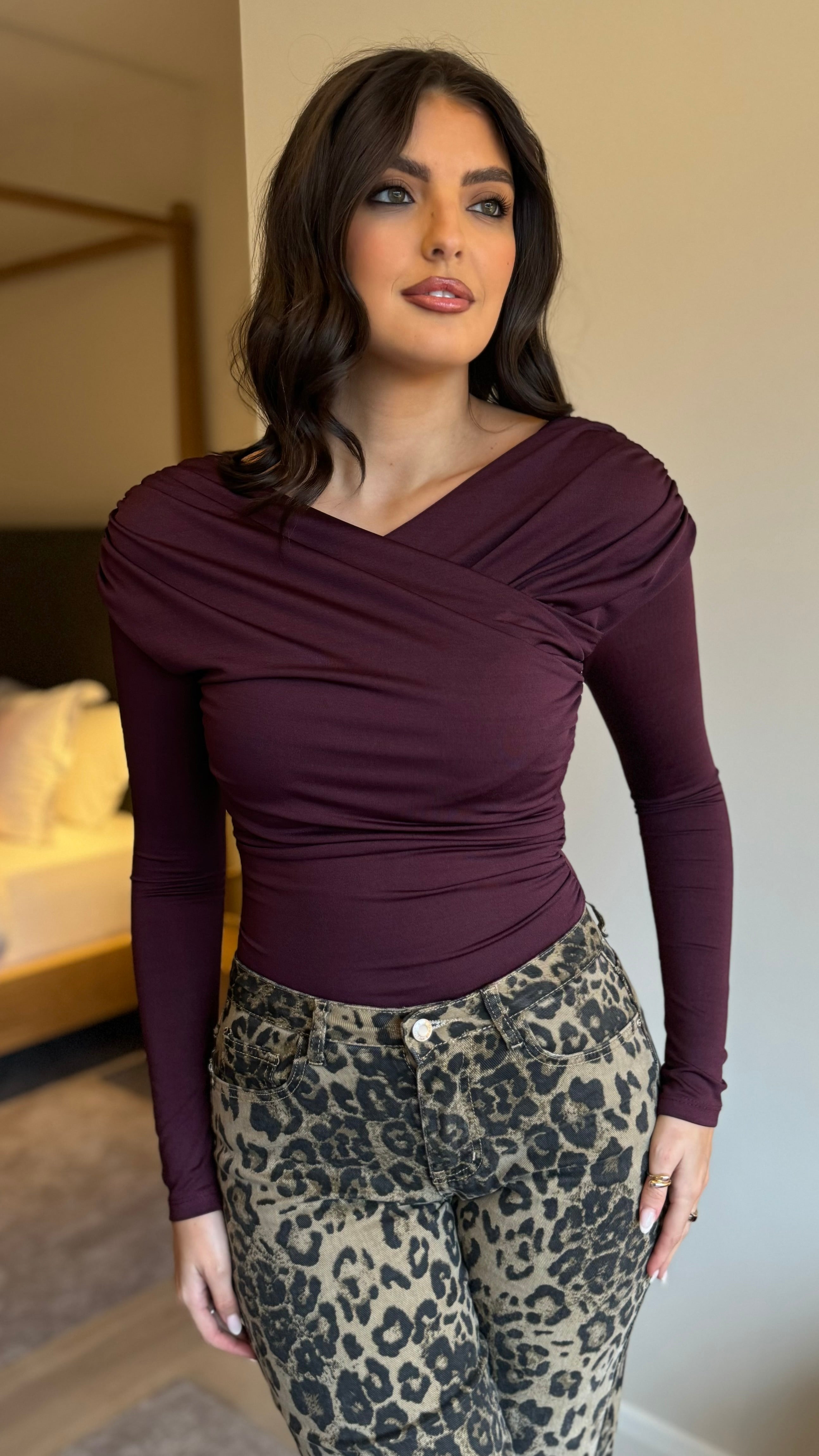 Sanna Plum Off Shoulder Ruched Long Sleeve Top