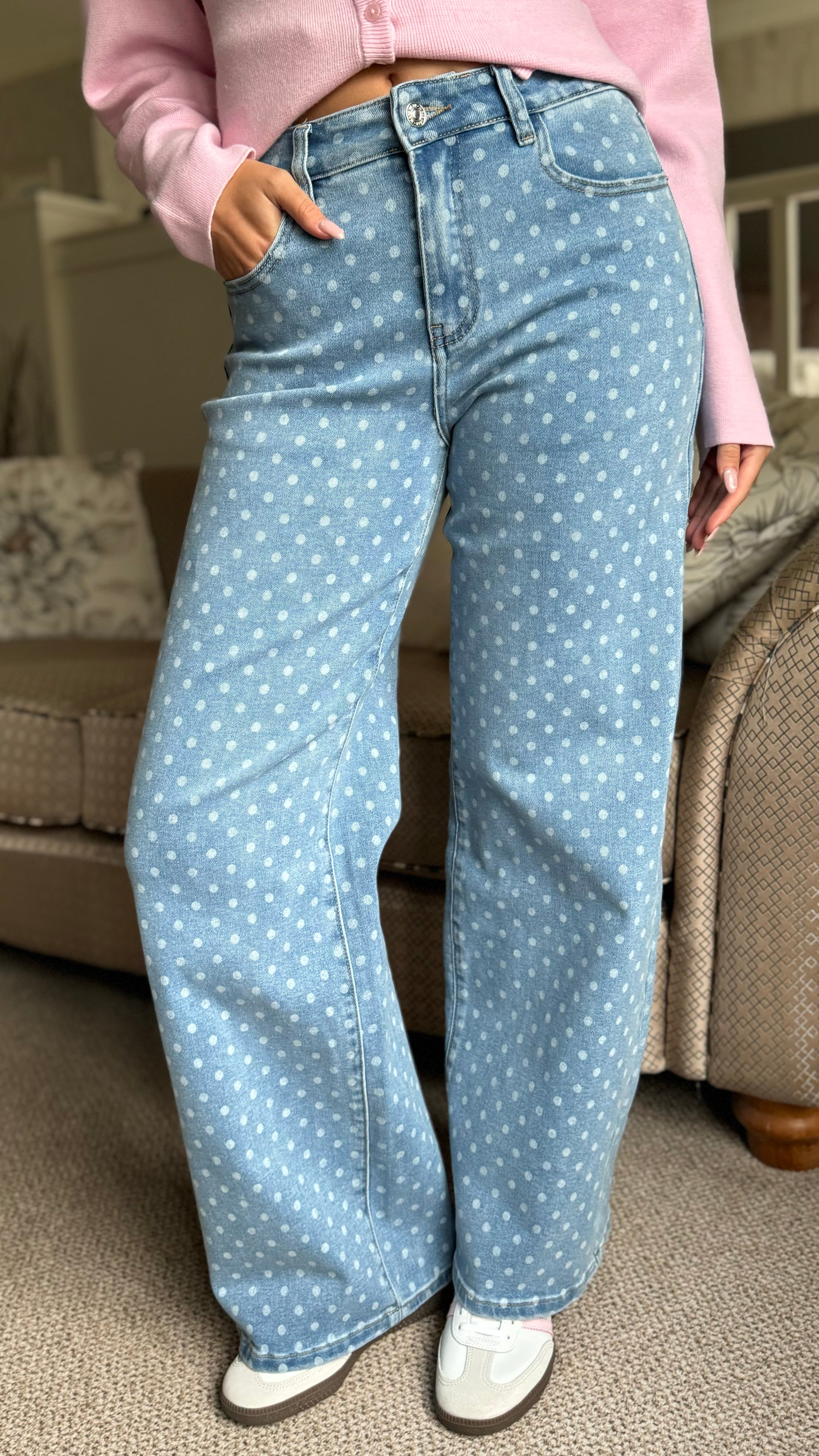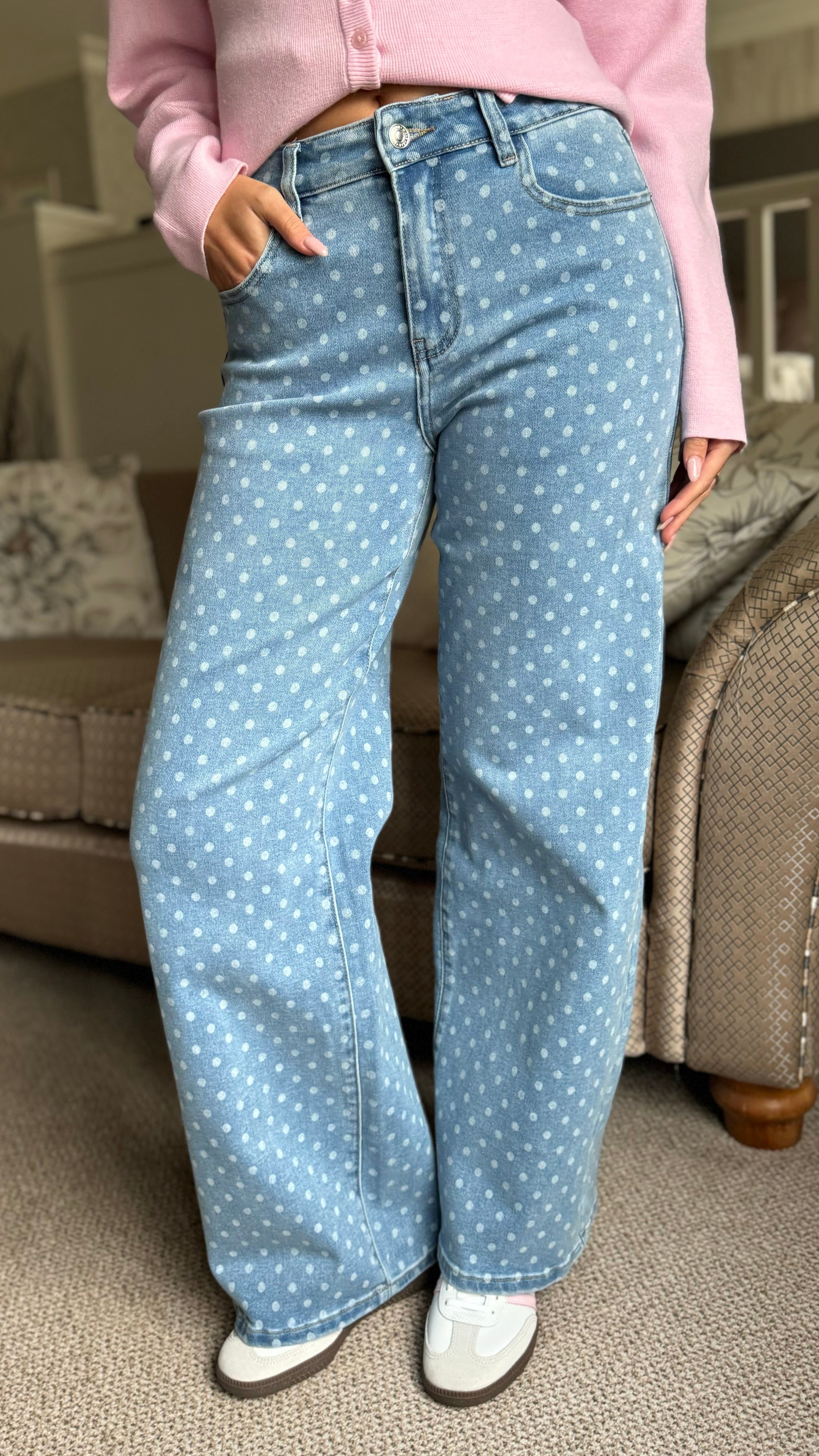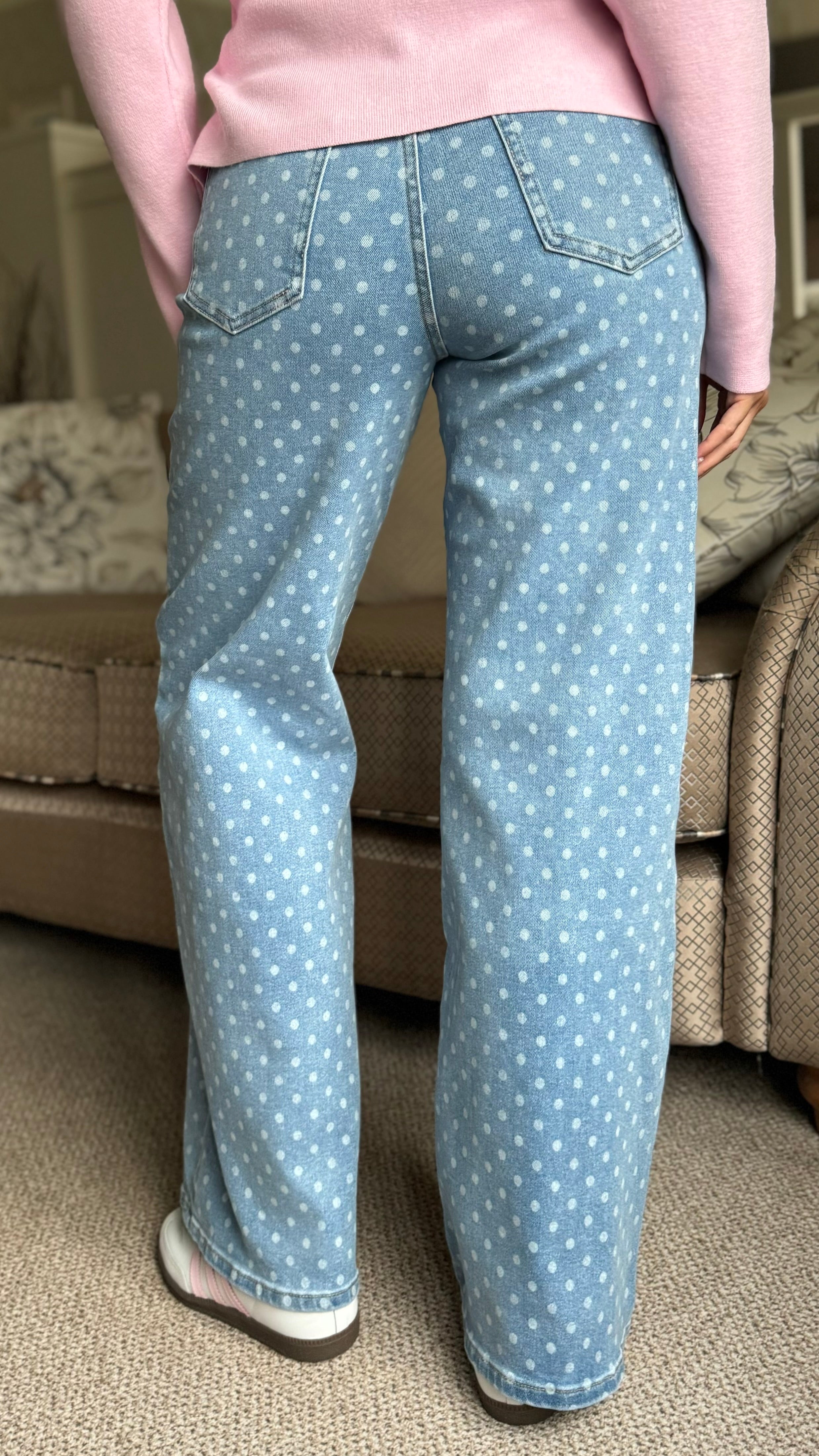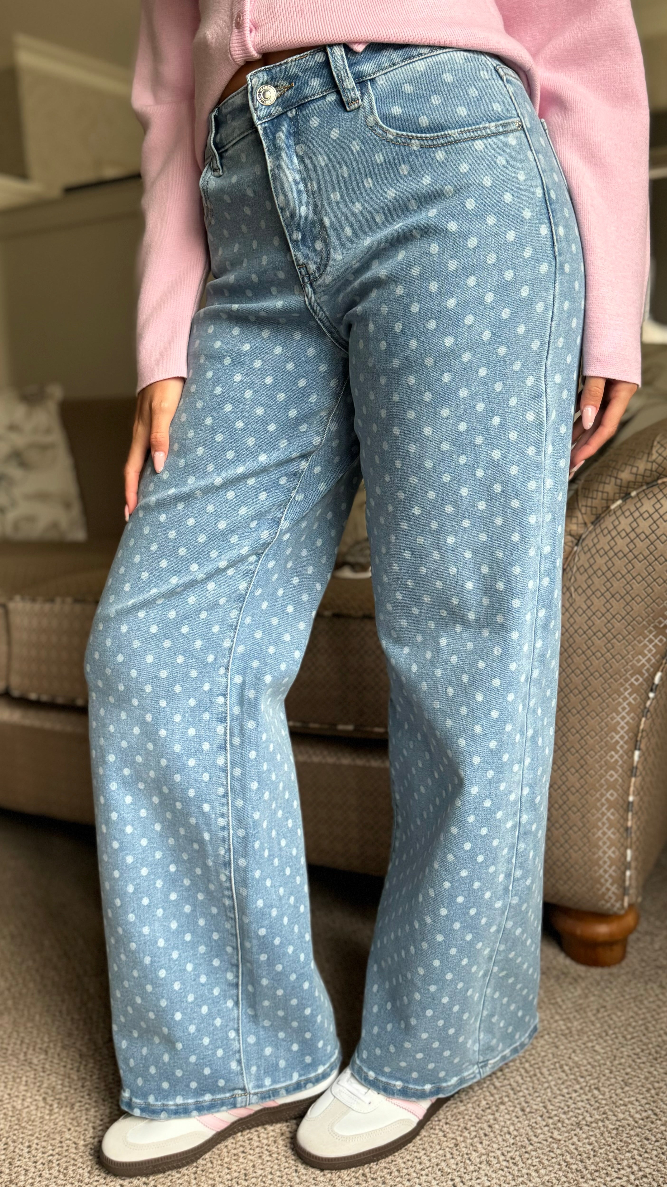 Stella Light Blue Polka Dot Straight Leg Jeans