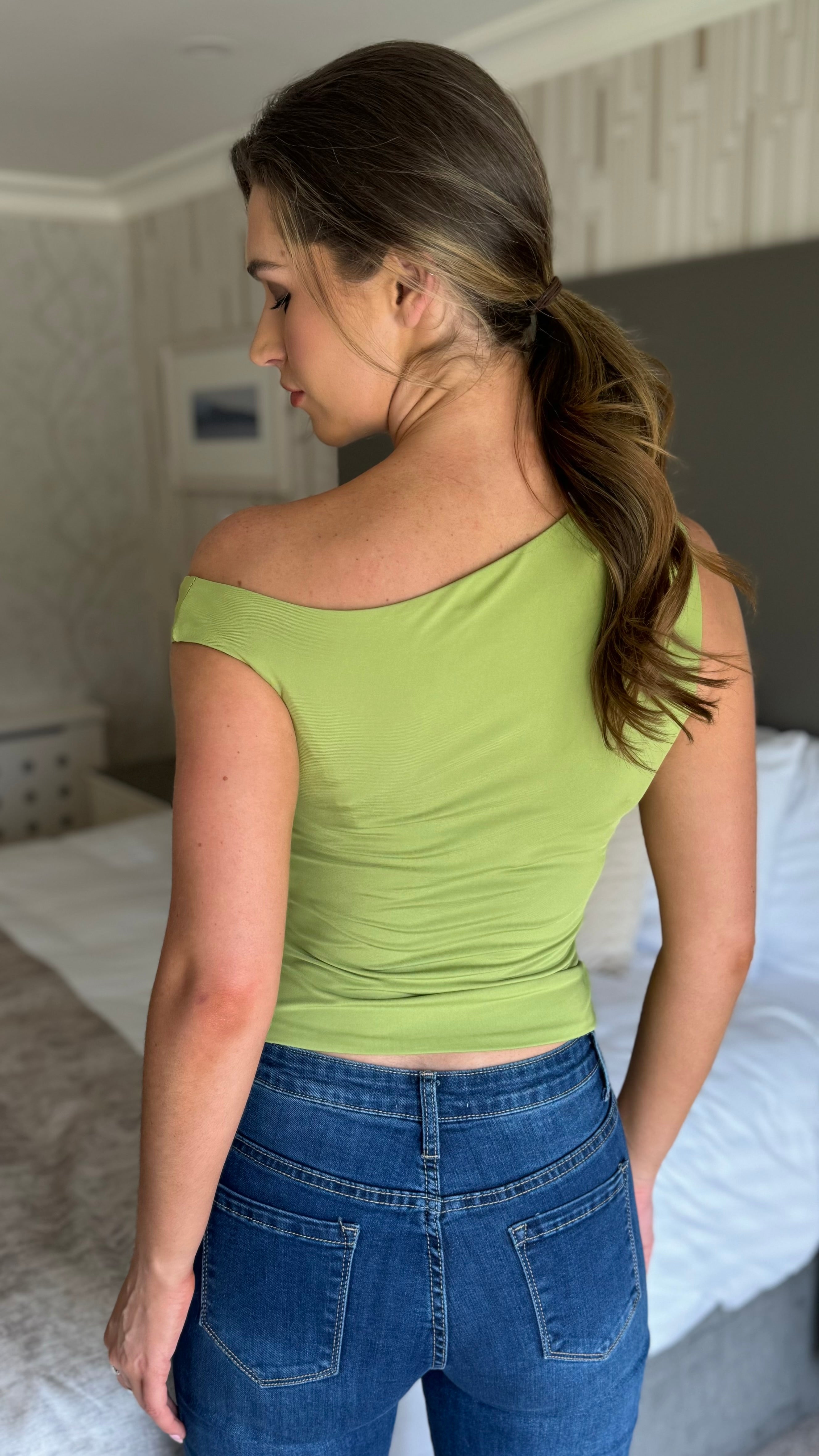 Introducing the Tara Green Off The Shoulder Draped Top - an elegant and exclusive addition to your wardrobe. With its off the shoulder design and draped detailing, this top exudes sophistication and luxury. Perfect for any occasion, the Tara top will elevate your style and make you stand out in a crowd. 💚