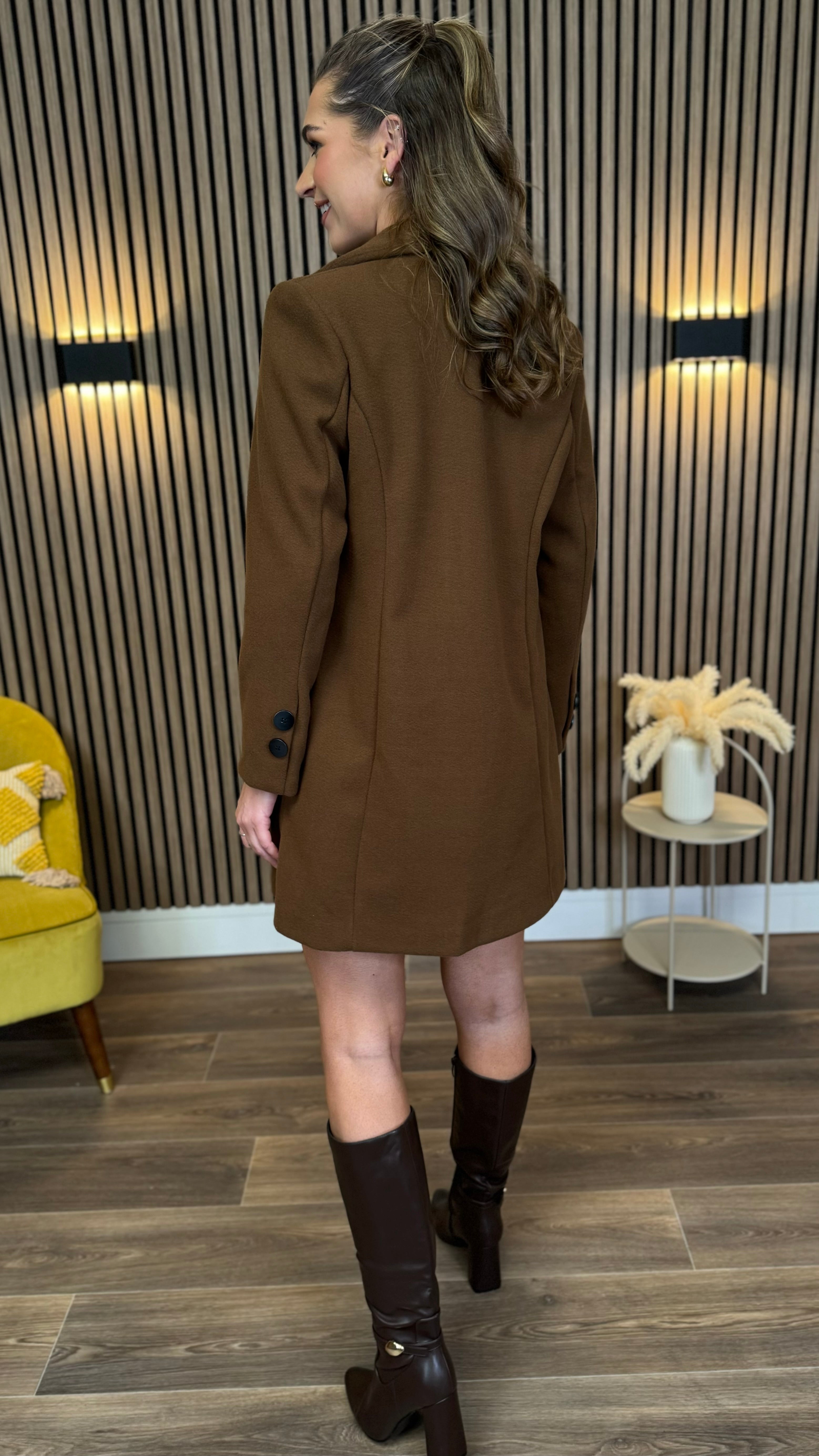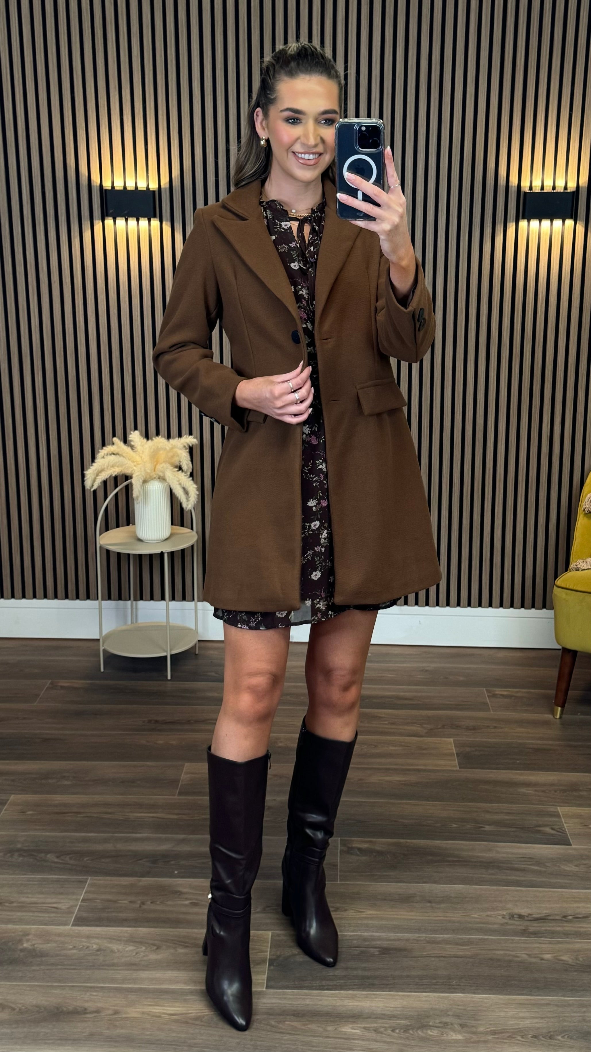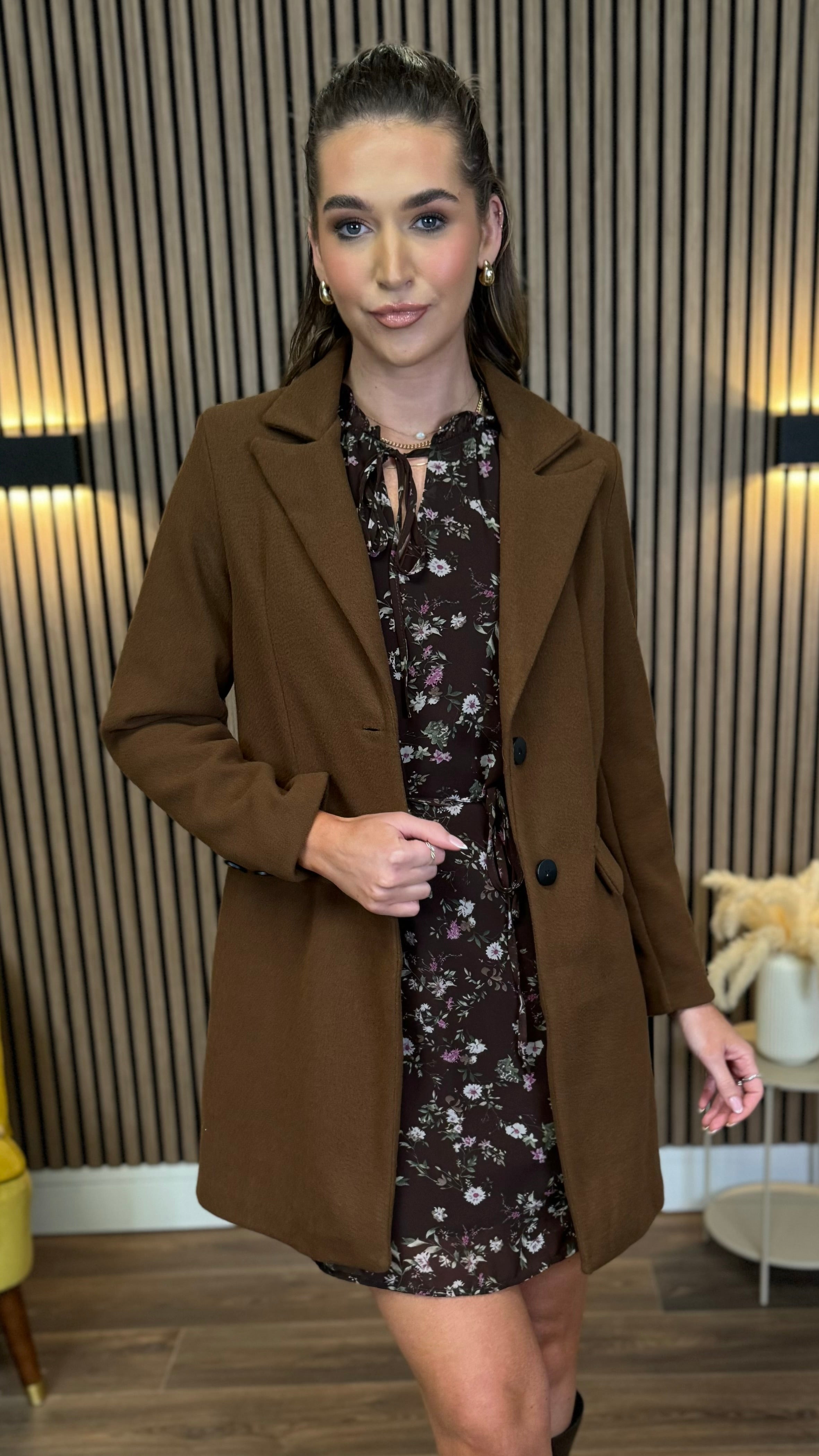 Step out in style with the Ursa Dark Brown Button Detail Coat. Featuring cozy long sleeves and a soft inner lining, it keeps you warm while turning heads. The black button details add a touch of bold contrast, and decorative pockets bring both charm and convenience. Perfect for those who love a playful twist on classic outerwear!