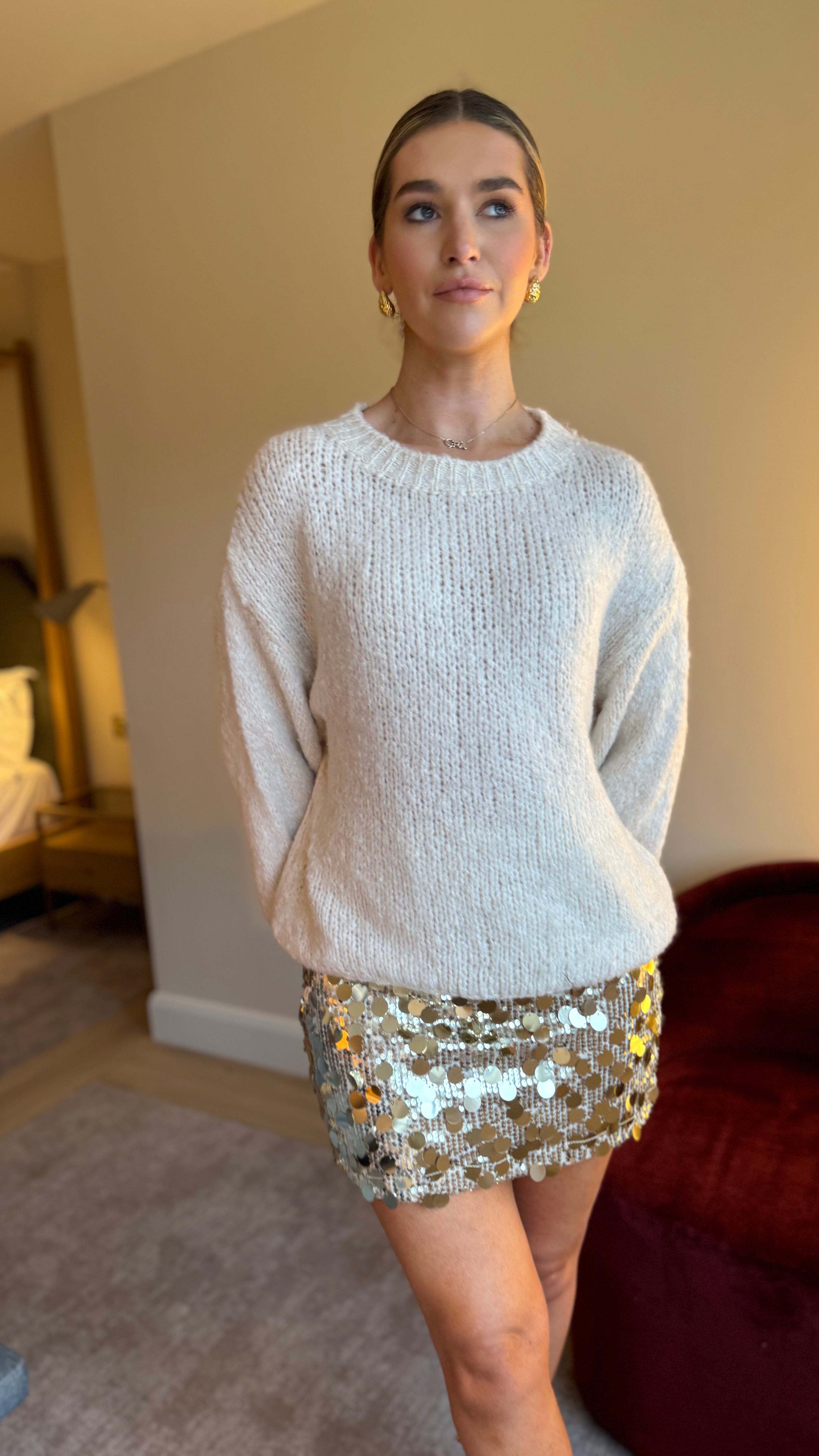 Valor Beige Round Neck Balloon Sleeve Jumper