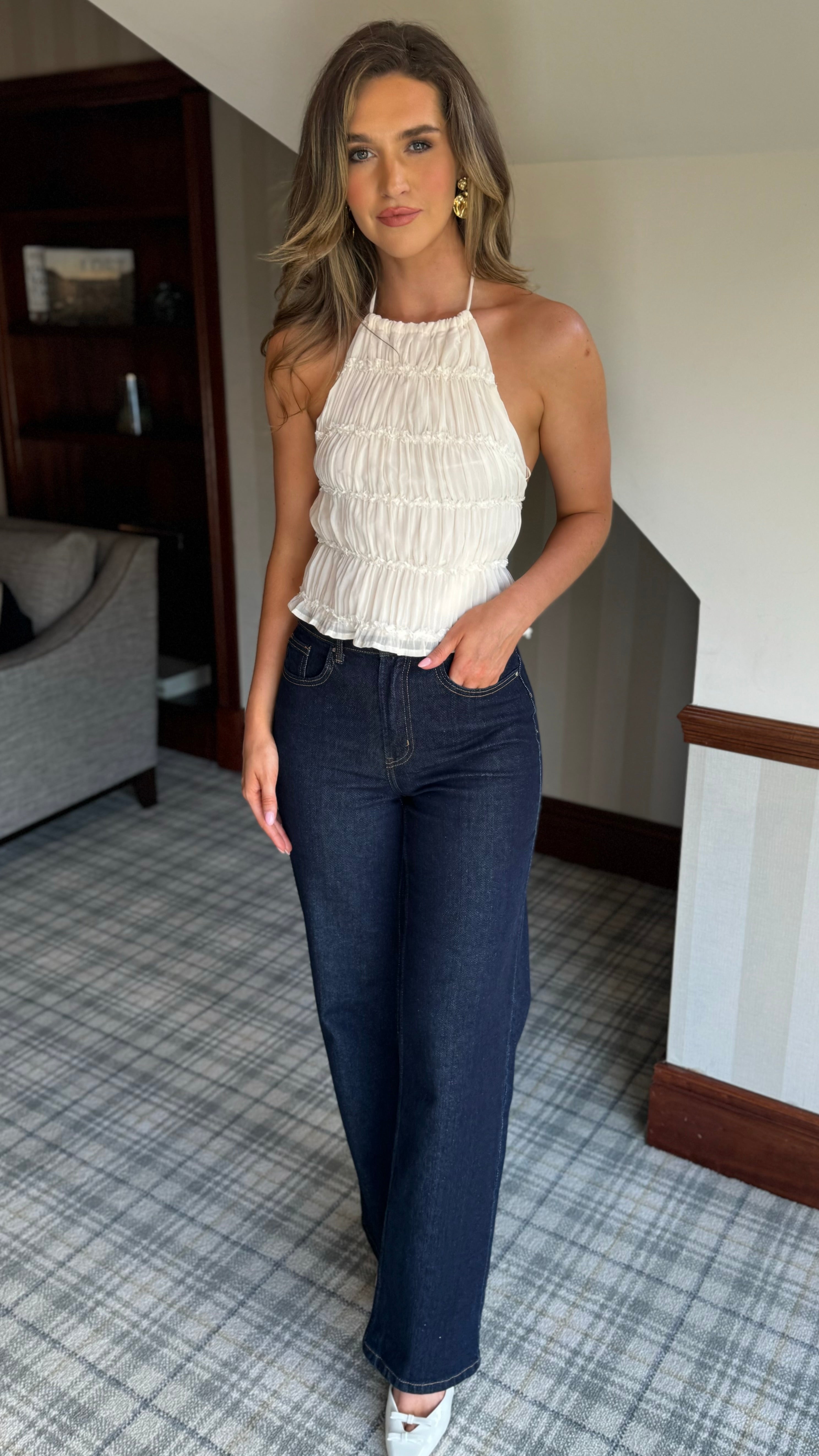Vera Off-White Ruched Backless Cami Tie Detail Top